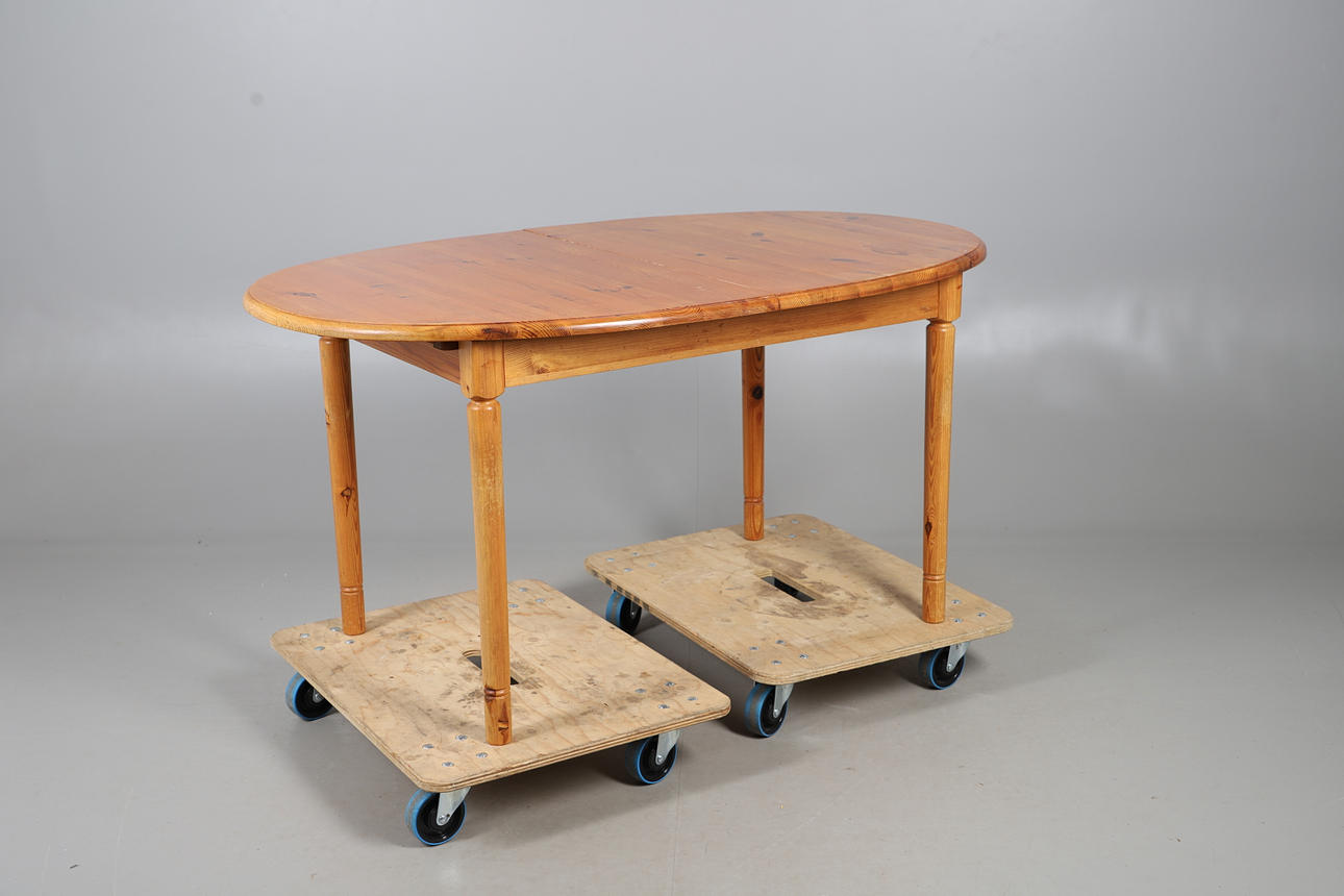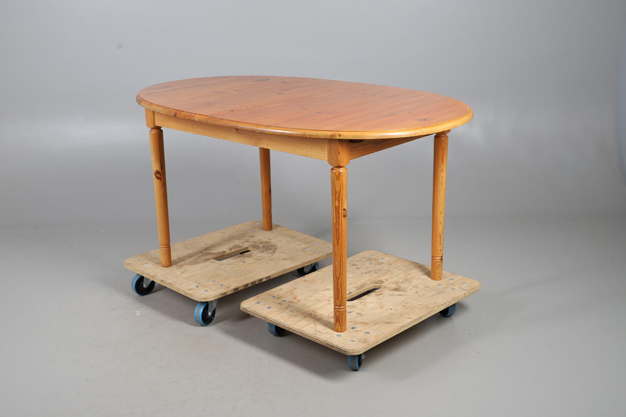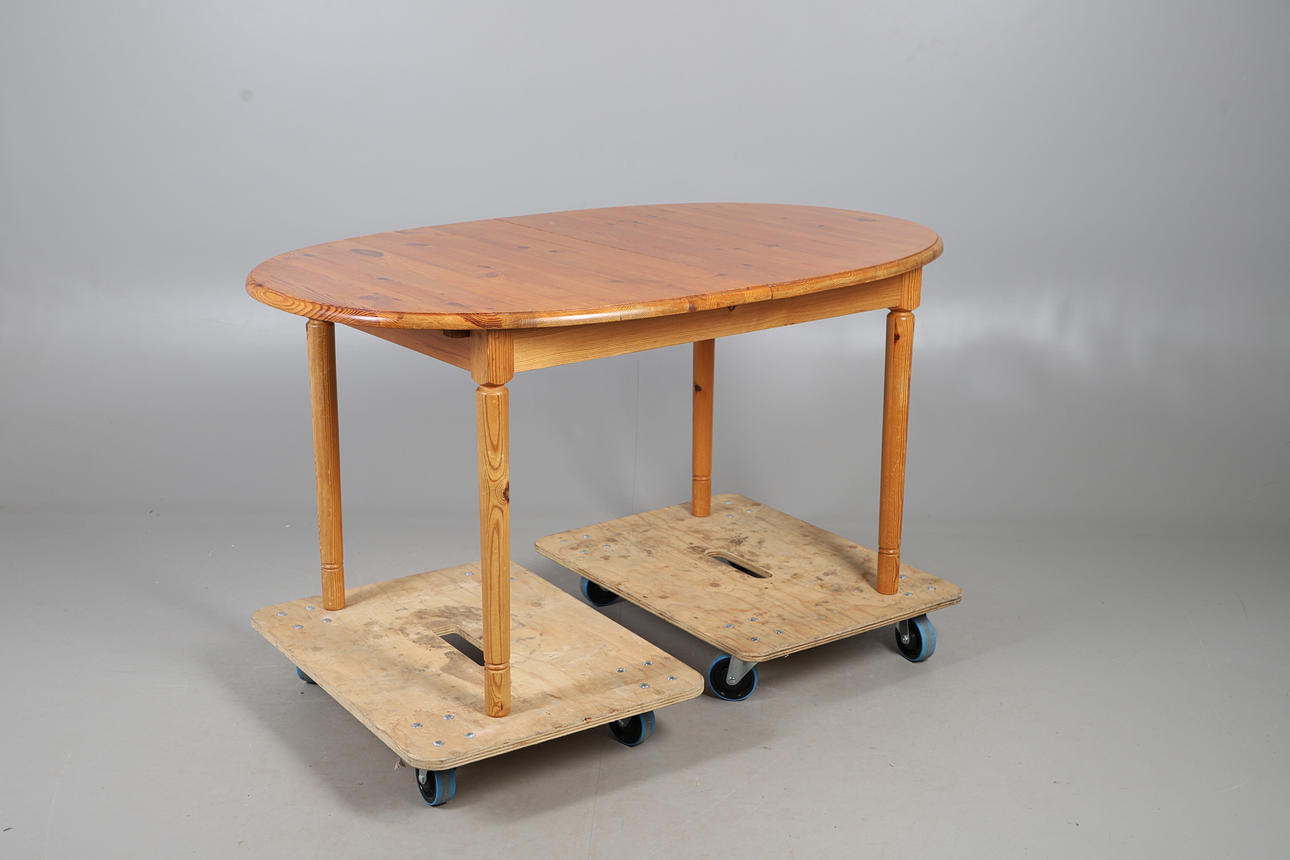 A 1980S/90S PINE EXTENDING KITCHEN TABLE.