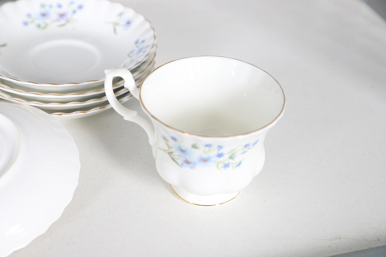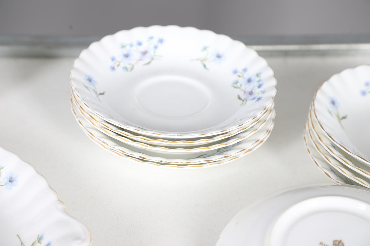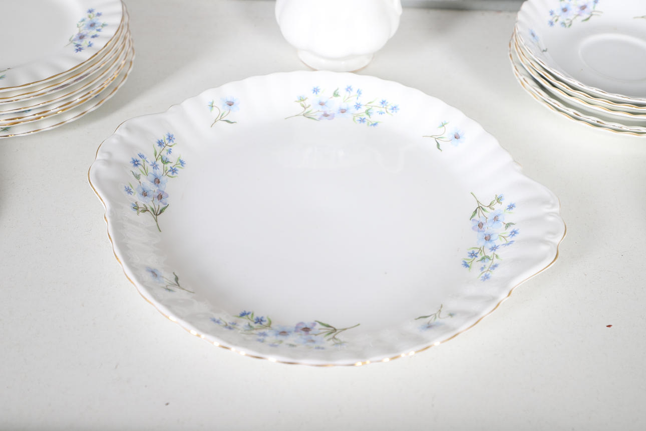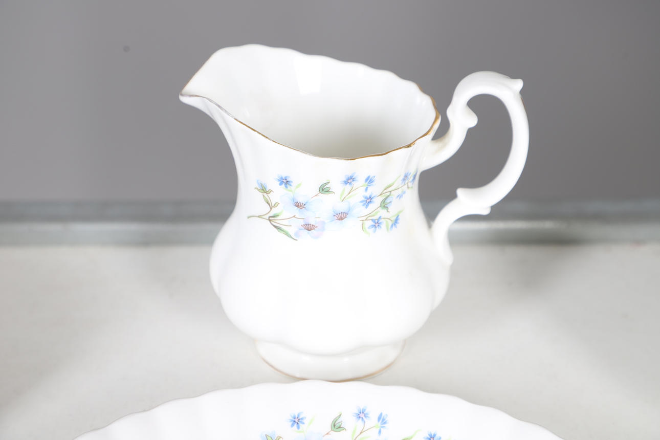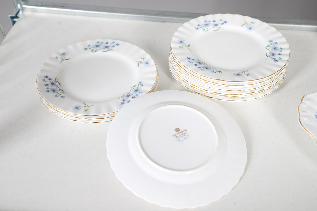 comprising of a teapot, 22cm high, milk jug, seven cups, ten saucers, eleven tea plates, one sandwich plate, 25cm diameter; together with a Creek Clayworks hanging plaque, and a glass seahorse ornament.