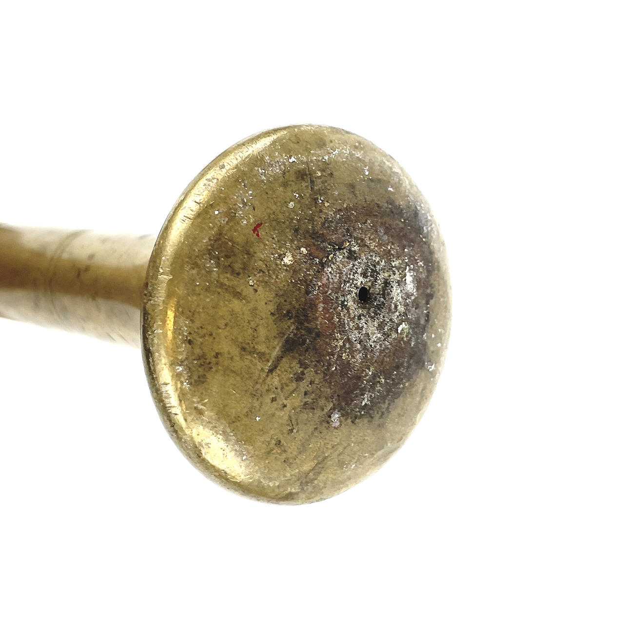 Mortar, number 5, height approx. 11.5 cm, Ø approx. 12.5 cm. Knob, marked “G”, length approx. 21 cm.