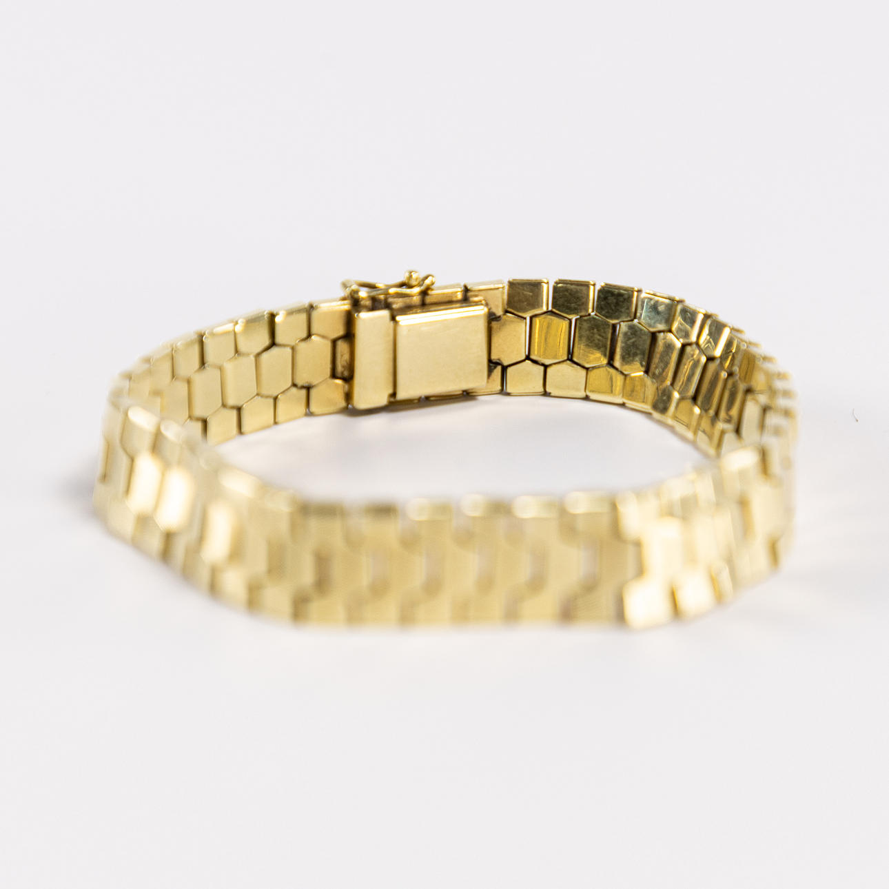 Articulated bracelet, width approx. 20 mm, length 19 cm, weight 34,3 grams.