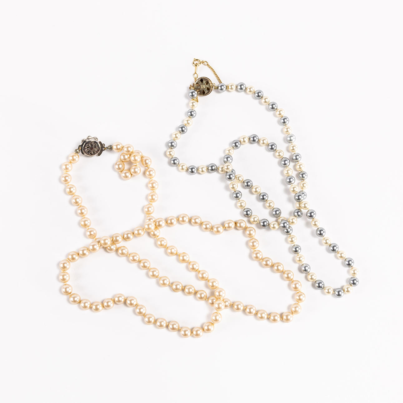 Two necklaces and a bracelet, length 75-, 58- and 20 cm.