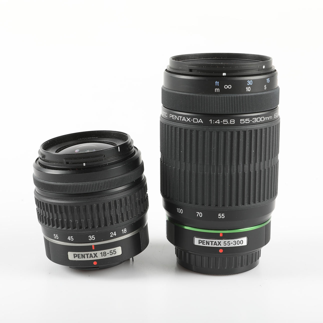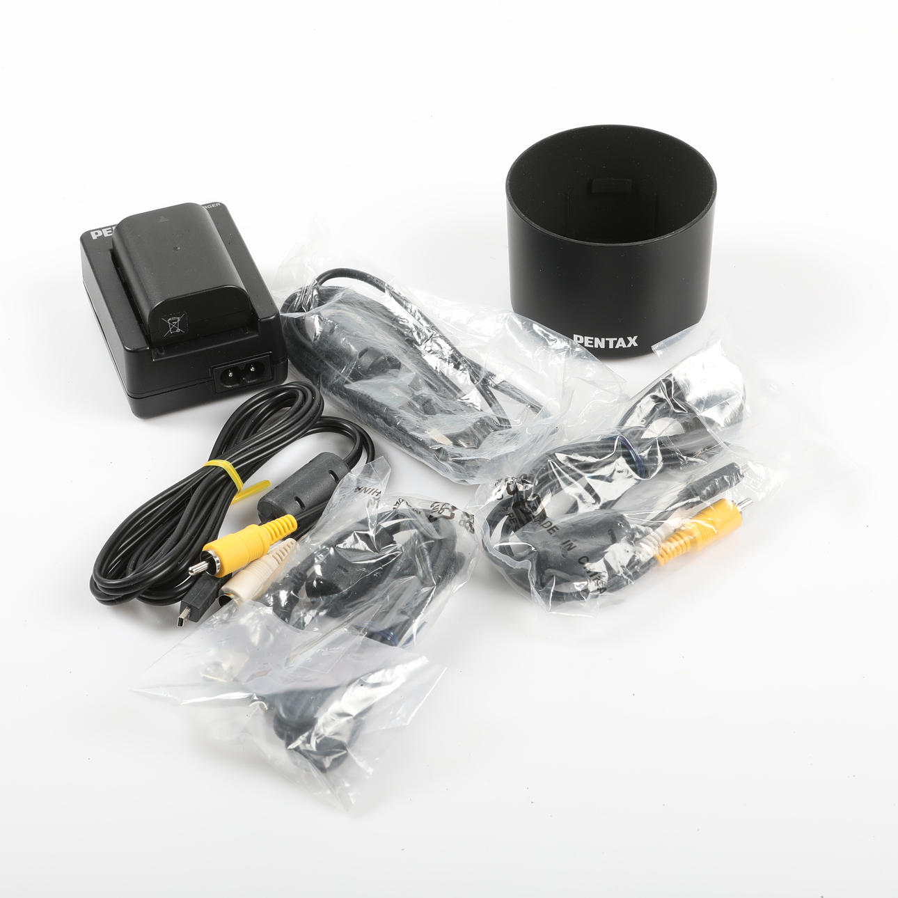 Digital camera with 18-55 mm on the camera body Lens 58-300 mm in carton Charger and battery, memory card, wiring and operating instructions.