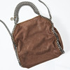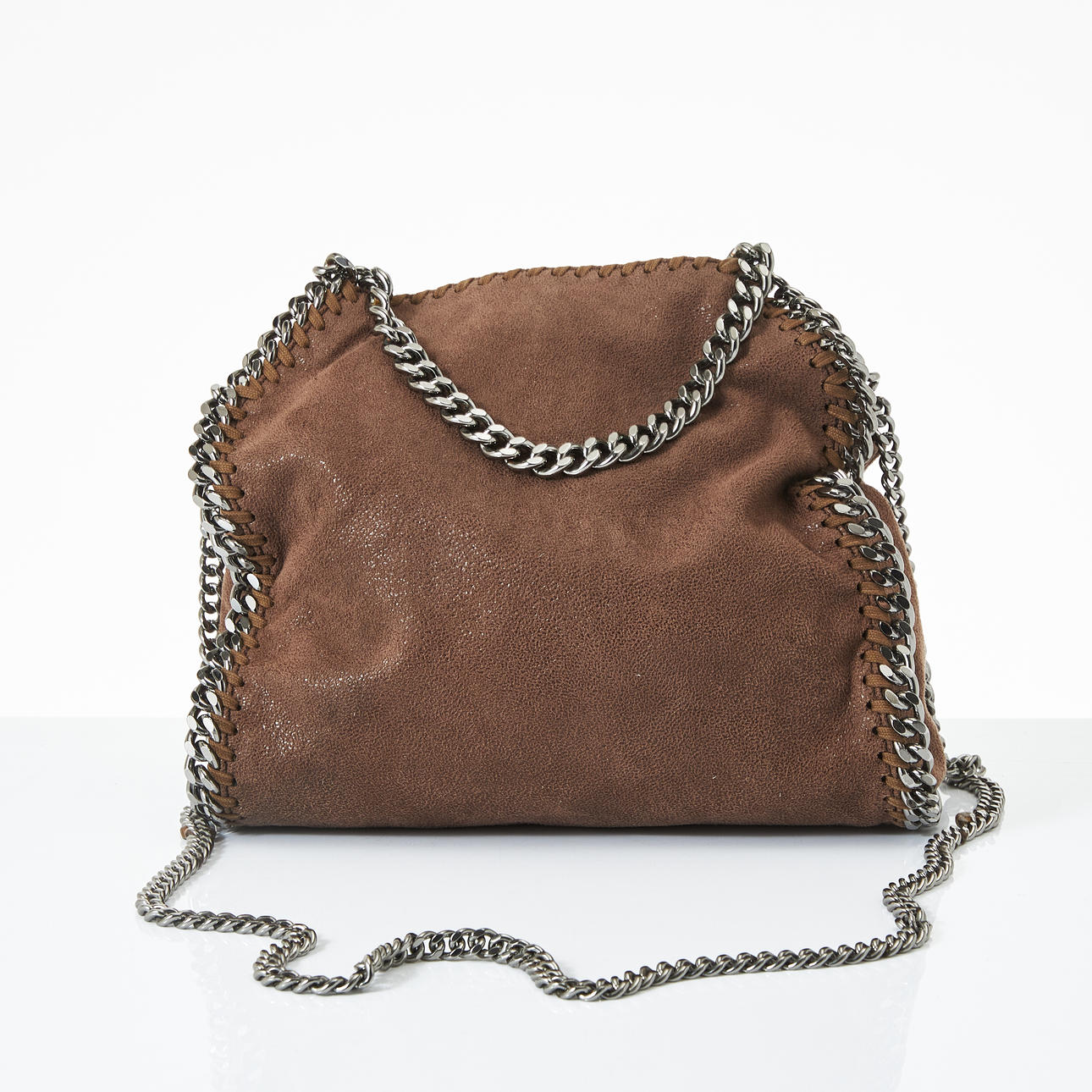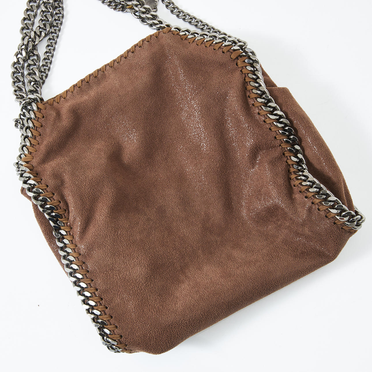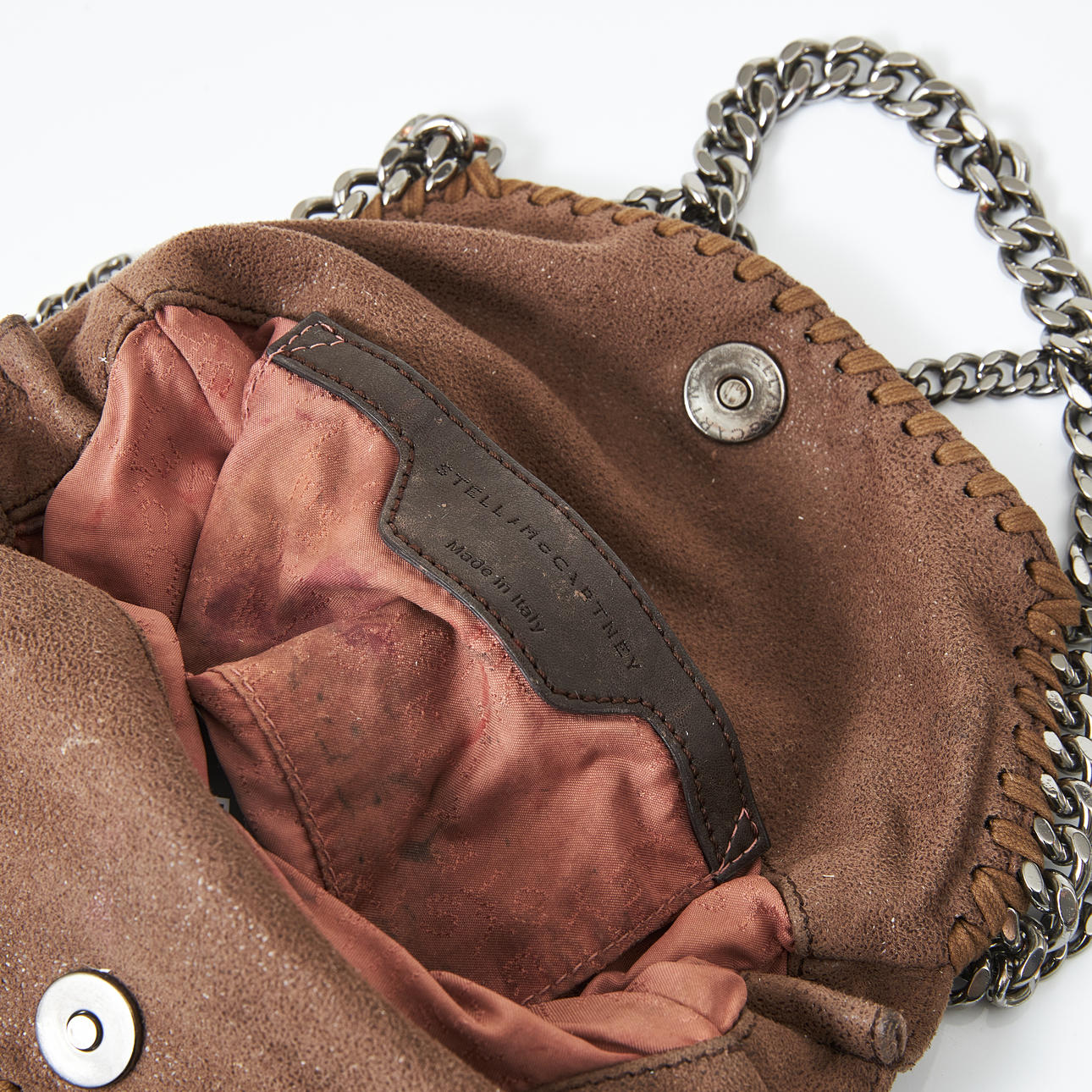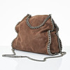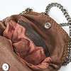 In vegan Shaggy Deer, semi-glossy, lined with links in oxidized metal, chain with pendant marking, lined with pink fabric, inside with a pocket, folded dimensions approx. 25 x 26 x 9 cm.