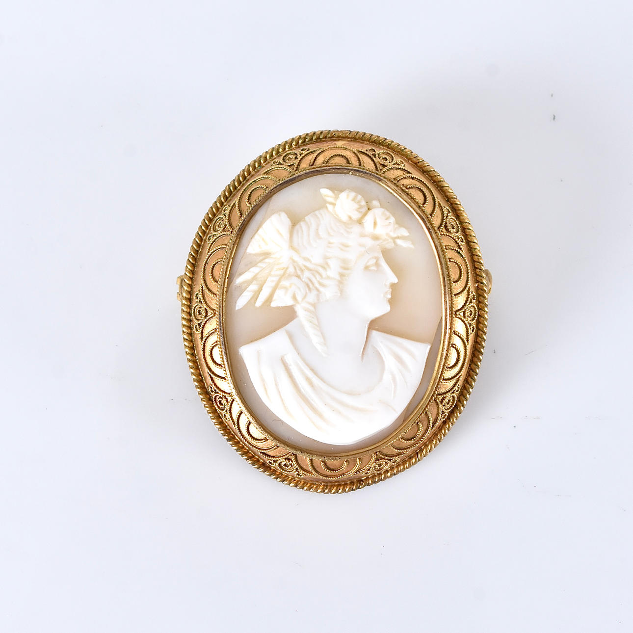 5001902. Camel brooch, gilt metal with camée-cut seashells.