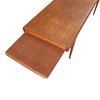 Rectangular coffee table made of veneer and solid teak wood, ends with a drawer and a pull-out top. Manufactured at CFC, Silkeborg. H. 52.5, L. 170, B. 60 cm.