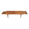 Rectangular coffee table made of veneer and solid teak wood, ends with a drawer and a pull-out top. Manufactured at CFC, Silkeborg. H. 52.5, L. 170, B. 60 cm.