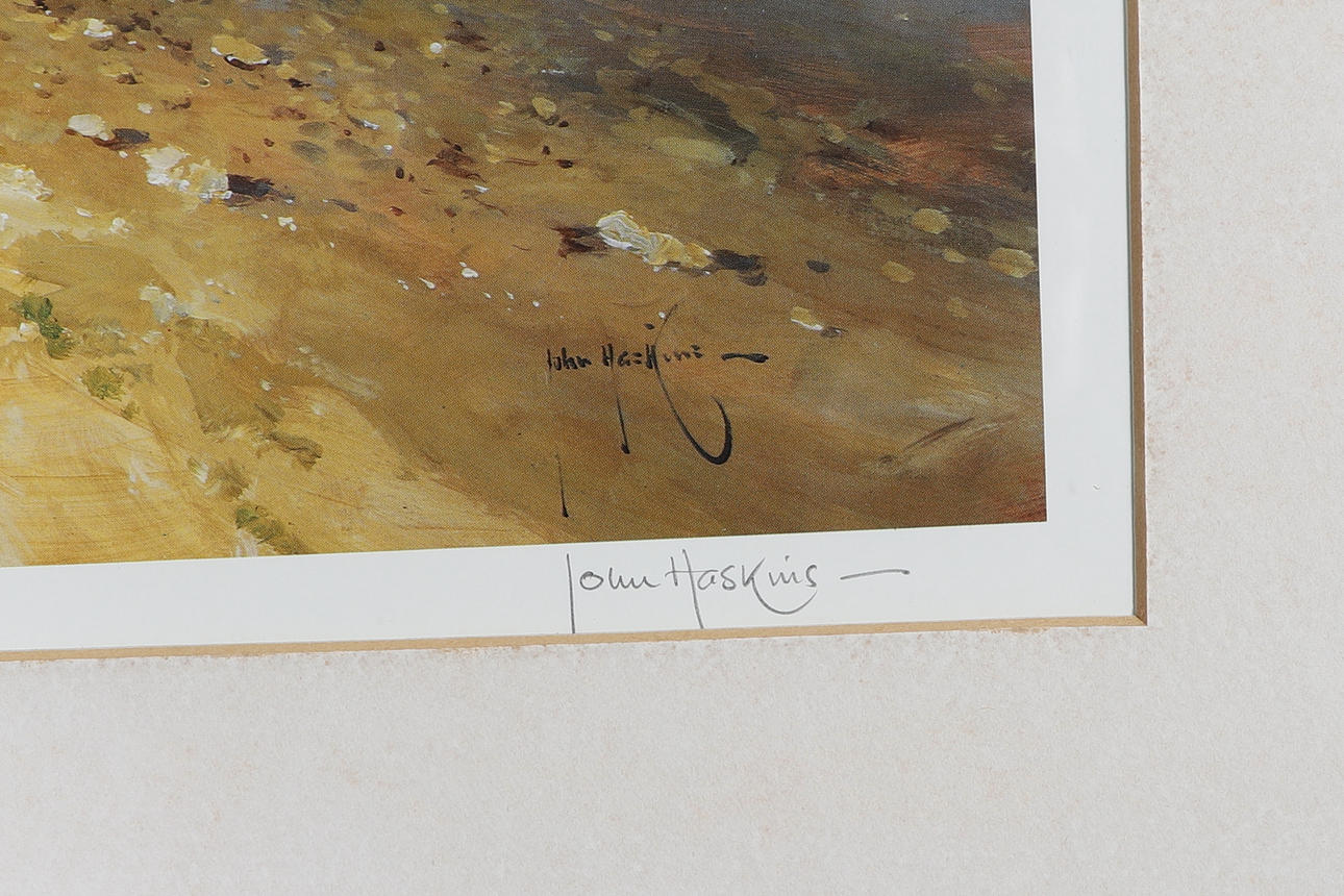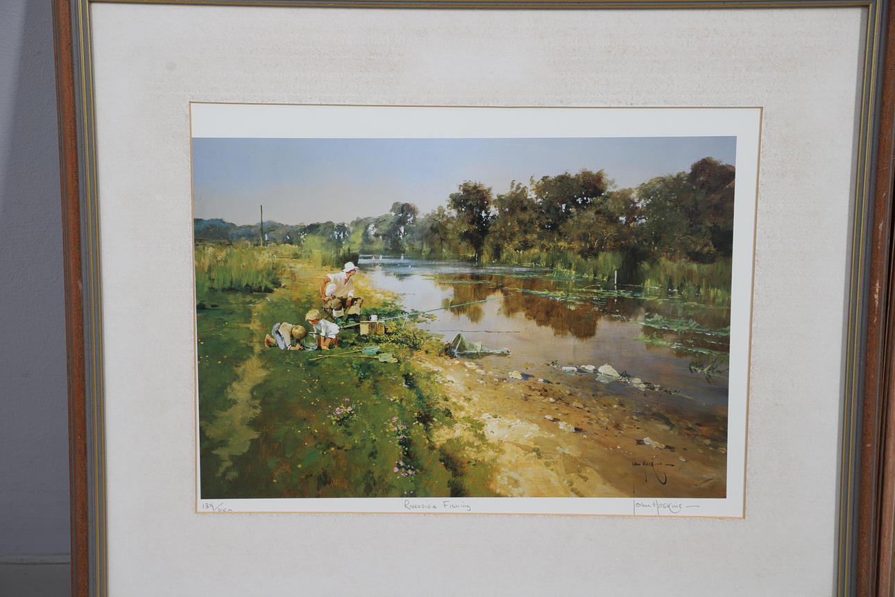 Comprising John Haskins (b. 1939), 'Riverside Walk', signed limited edition print 139/850, and Mandy Shepherd 'Gone Fishing', signed limited edition print 255/500, the larger W51 x H43cm (2).