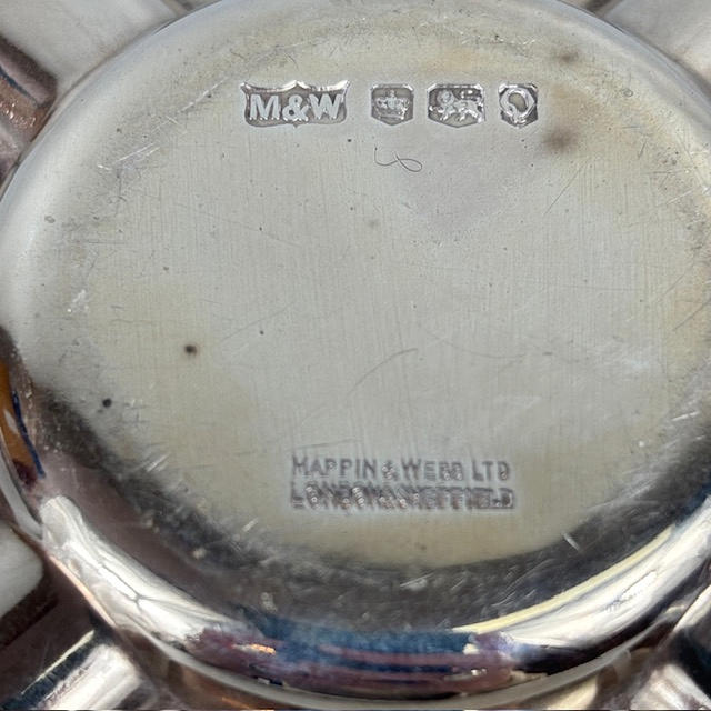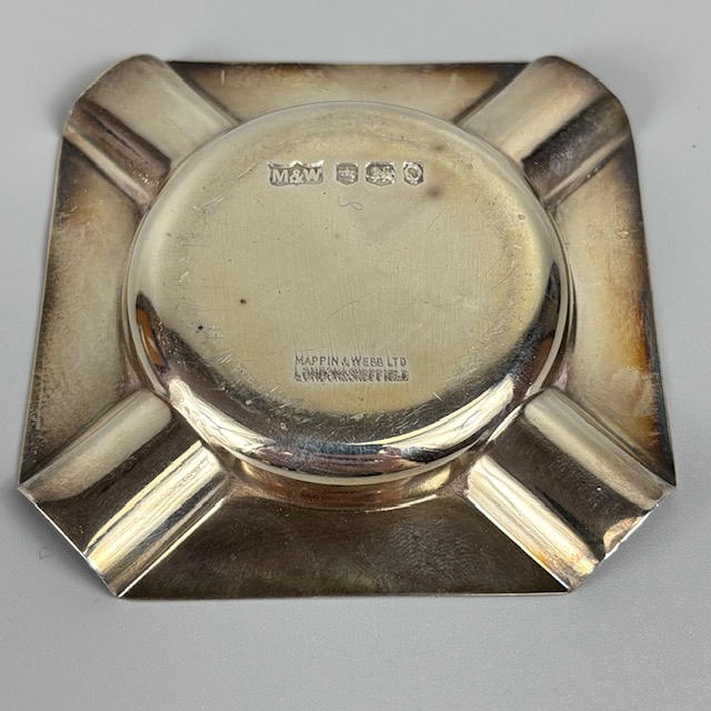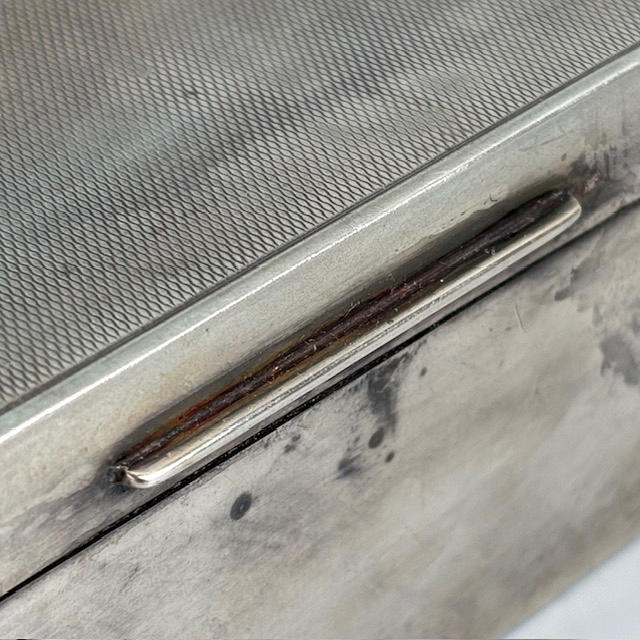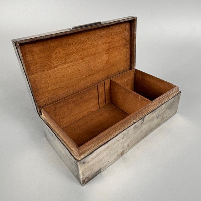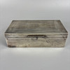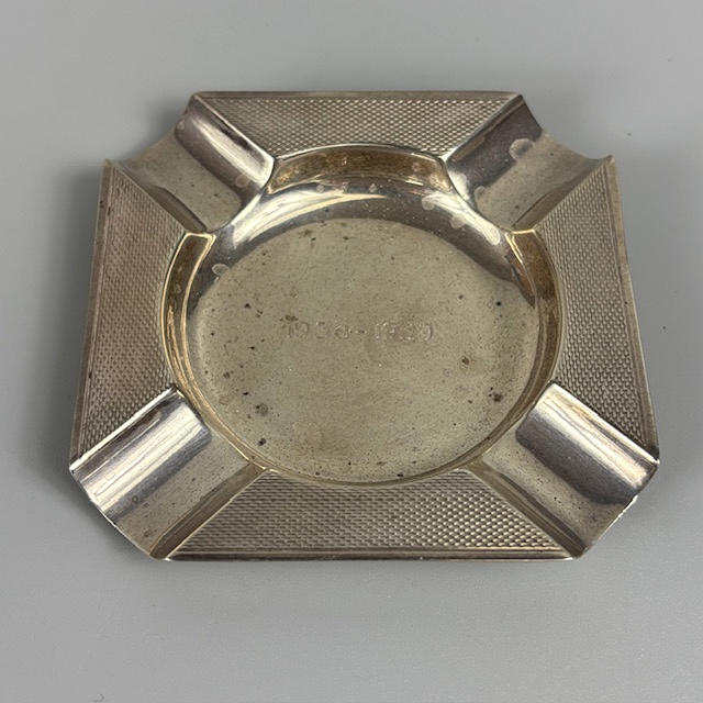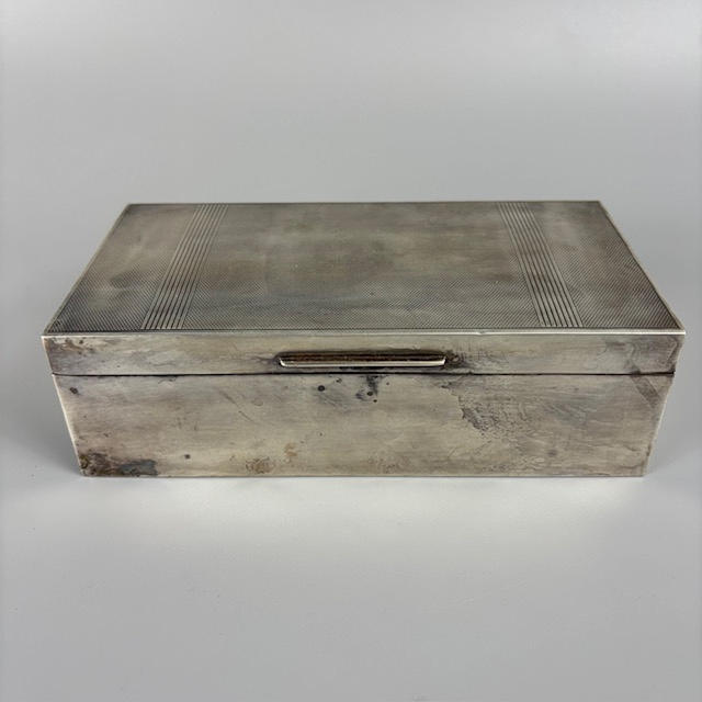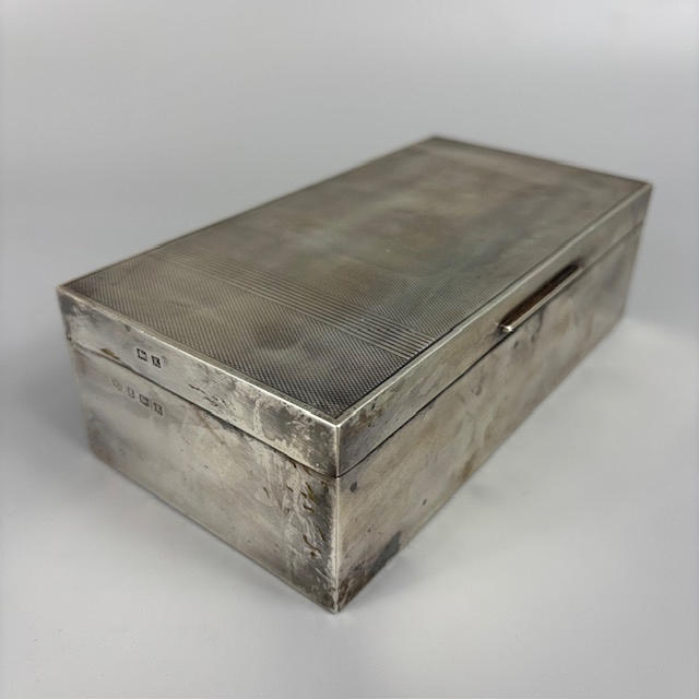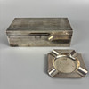 English Art Deco English silver hallmarked cigarette box Birmingham 1909, with engine turned decoration to top, lined with wood, approximately, 16.5 x 8.5 x 5cm, total weight 492g, along with a silver ashtray of similar design approximately 33g.