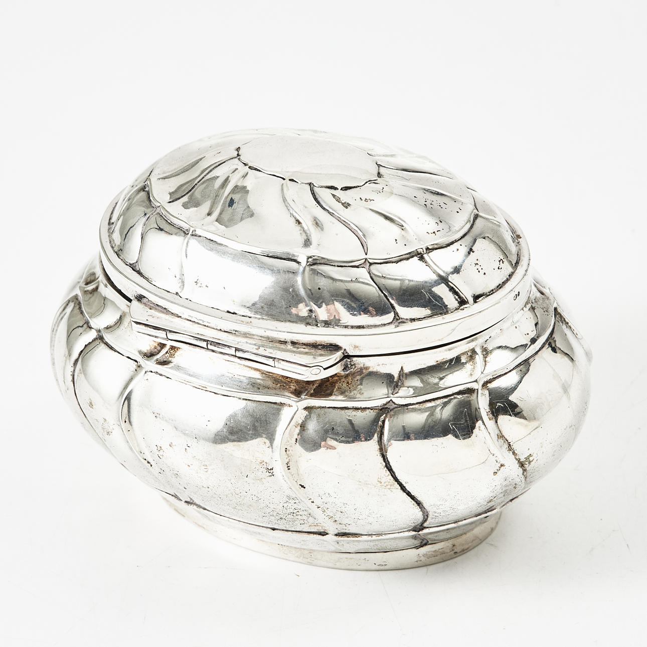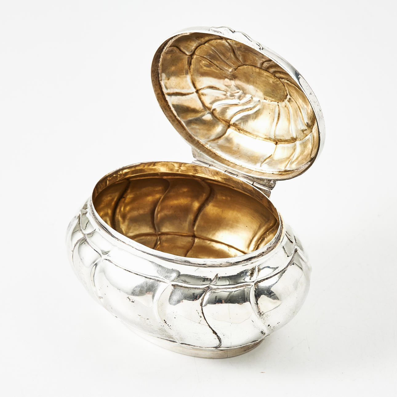 Egg-shaped, decor with turned gold rings, interior gilt, Swedish import stamp, height 11, 16x13 cm, weight 355 g.