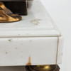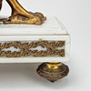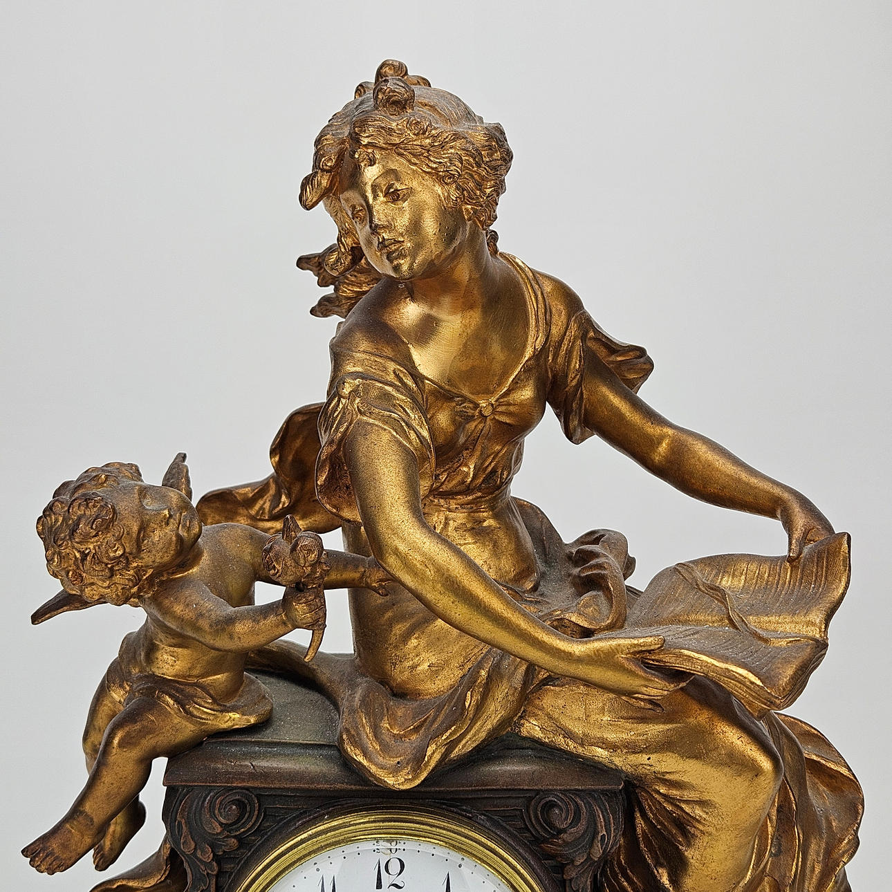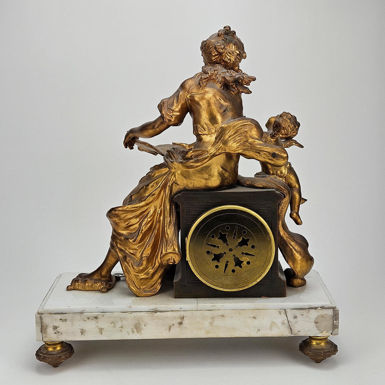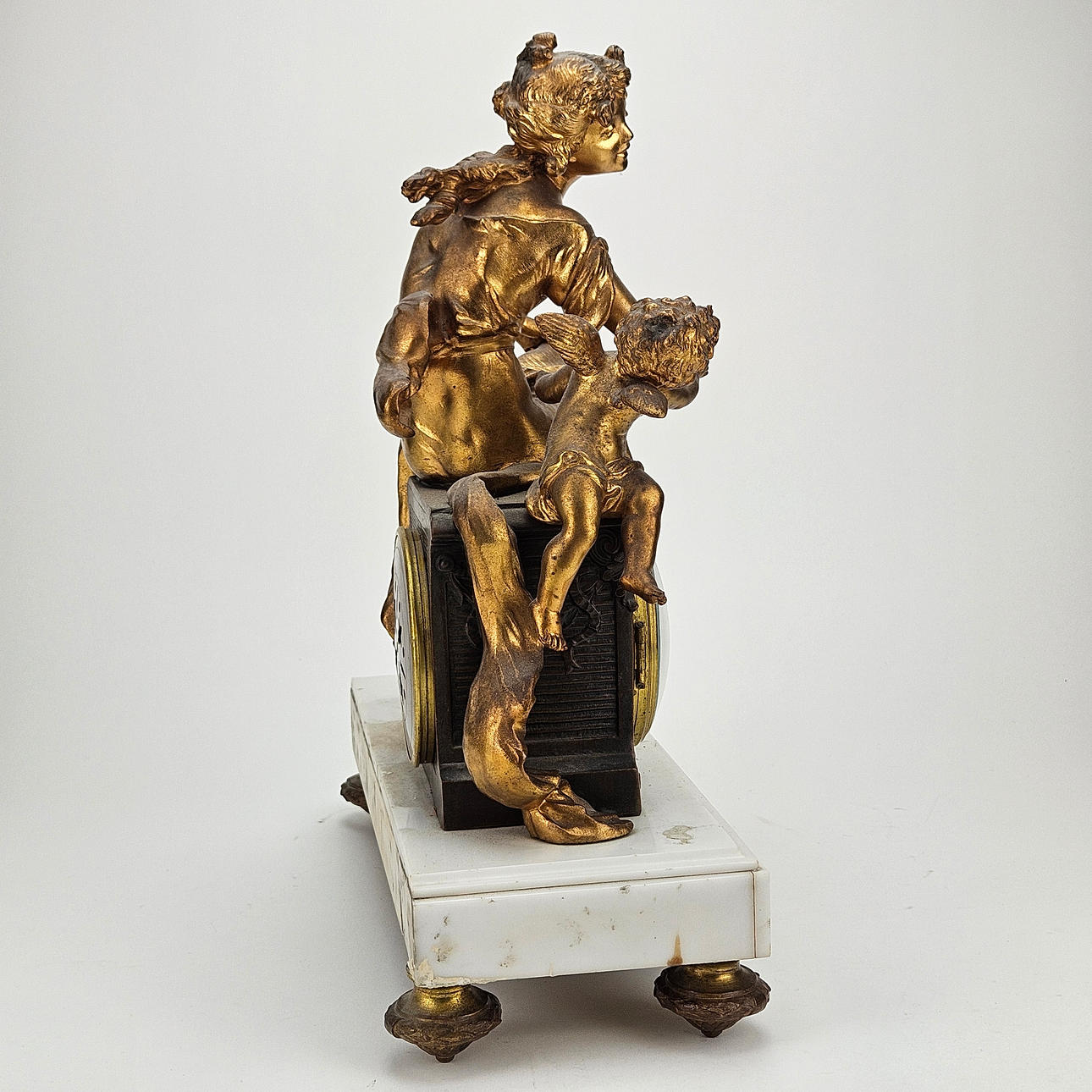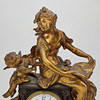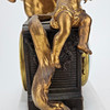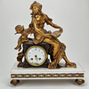 Patinated metal and alabaster, decor with woman and amorin. Length approx. 36, height 41 cm.