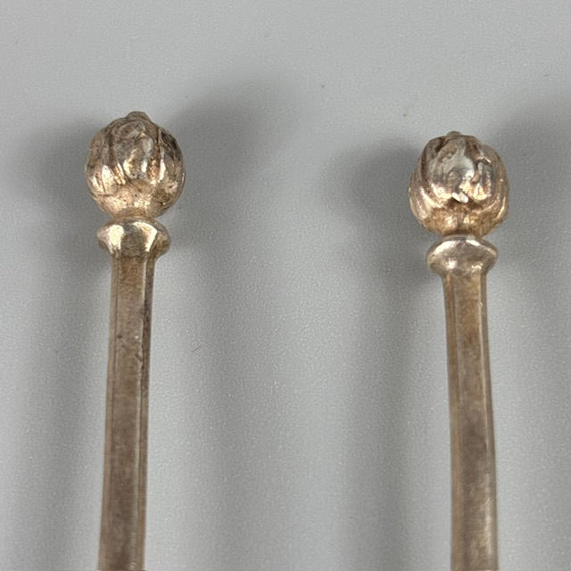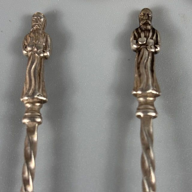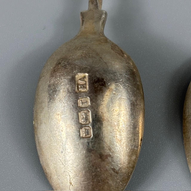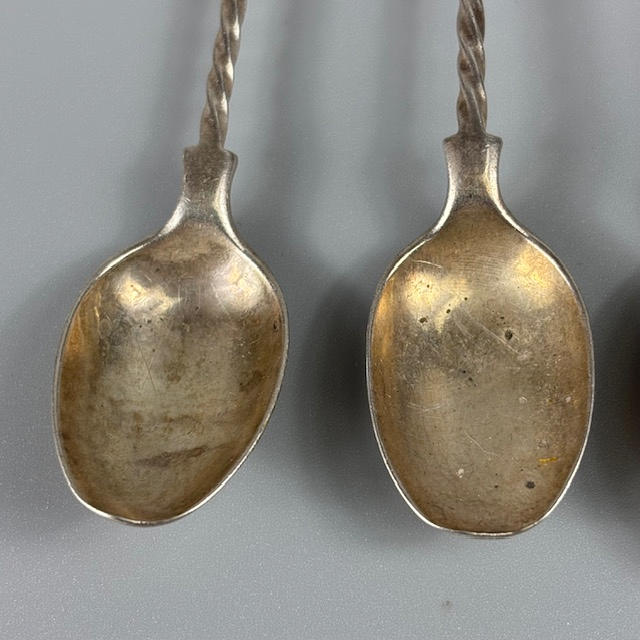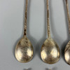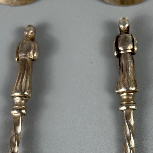 Set of five English silver hallmarked apostle coffee spoons approximately 57g, and a set of five ball top coffee spoons approximately 58g.