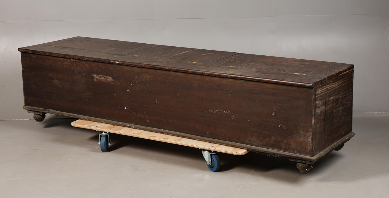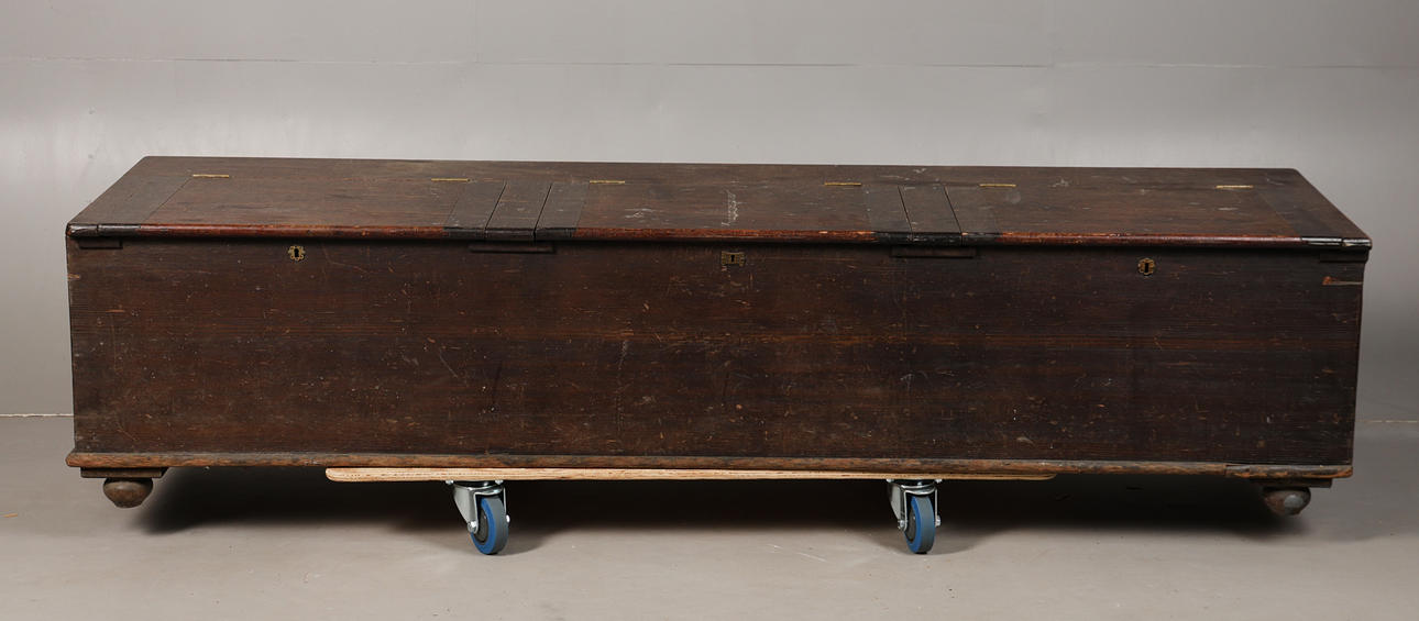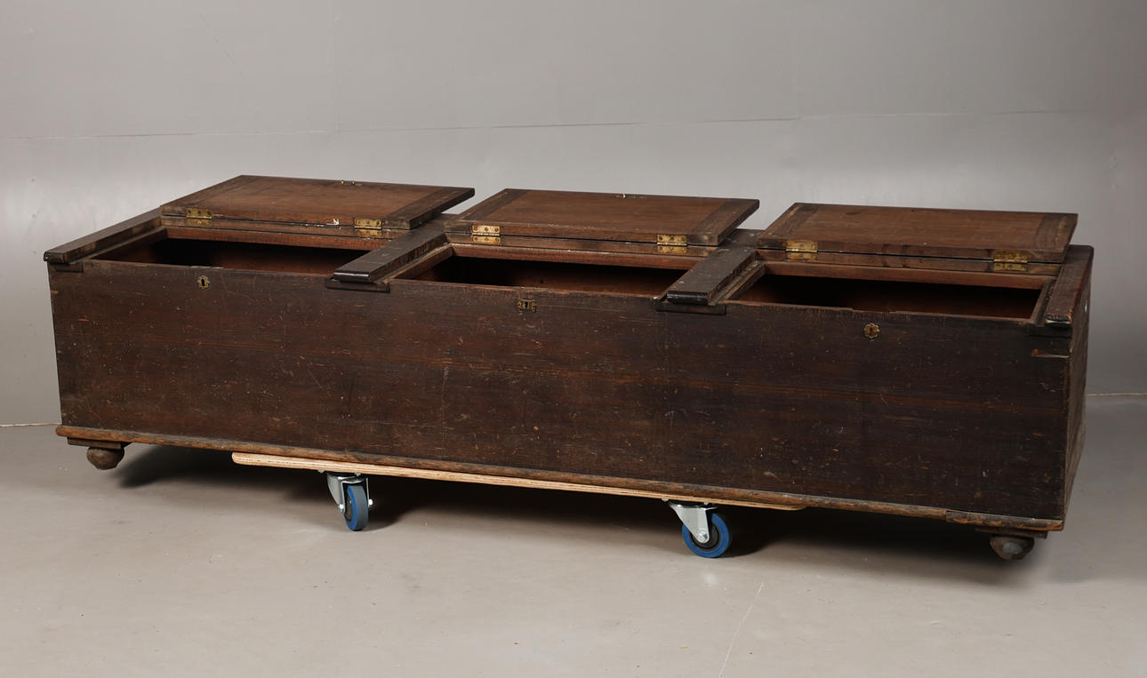 The top with three hinged lids, 206 cm long, 53c cm deep, 40.5 cm high.