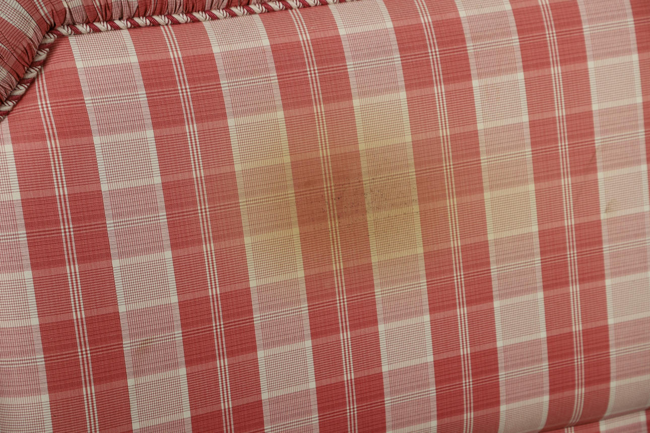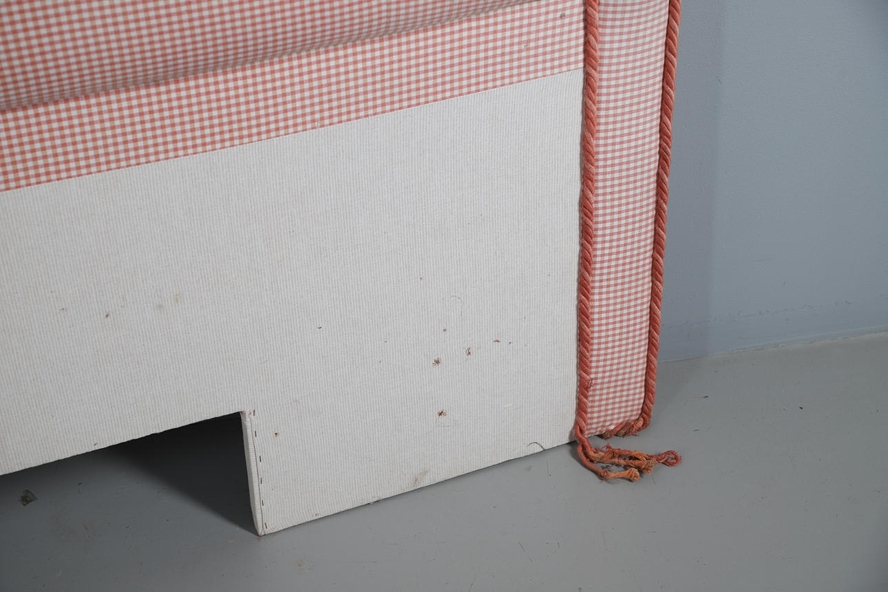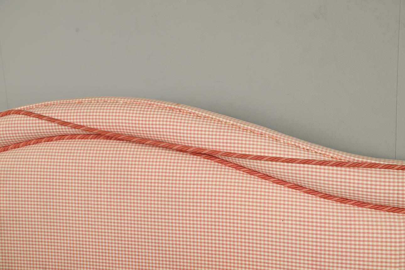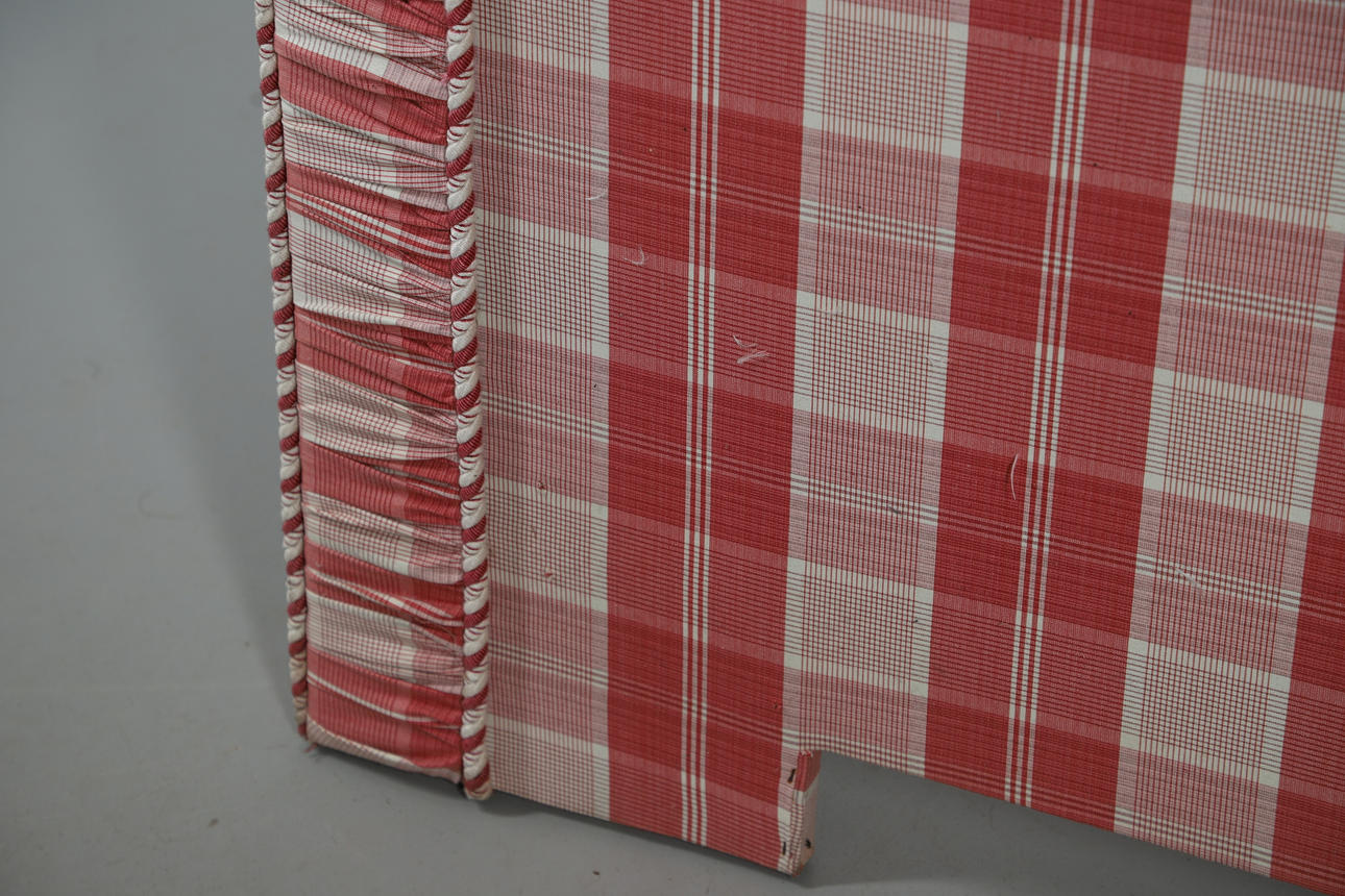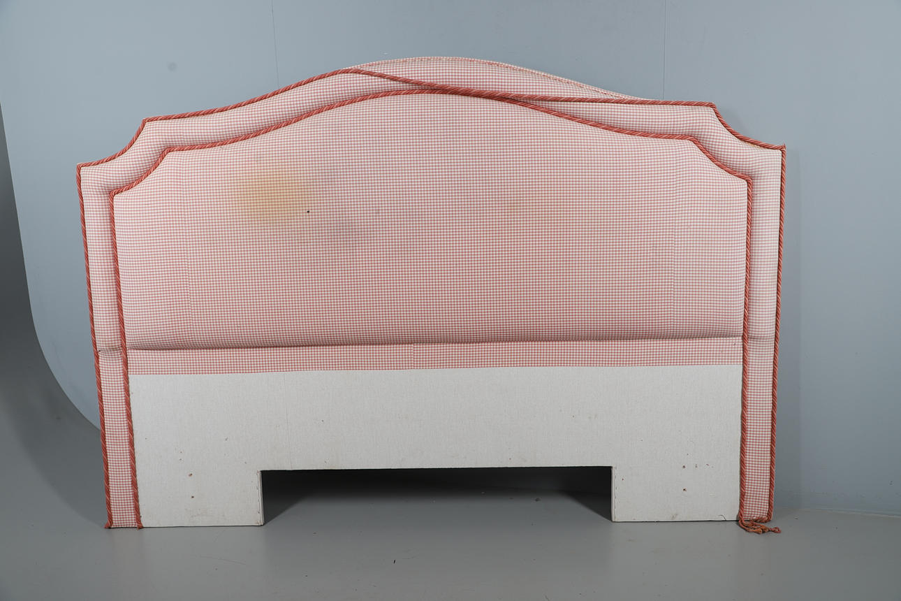 To include upholstered bed ends, in a pink tartan pattern. Size of headboard, 142cm (h) x 206cm (w). (2).