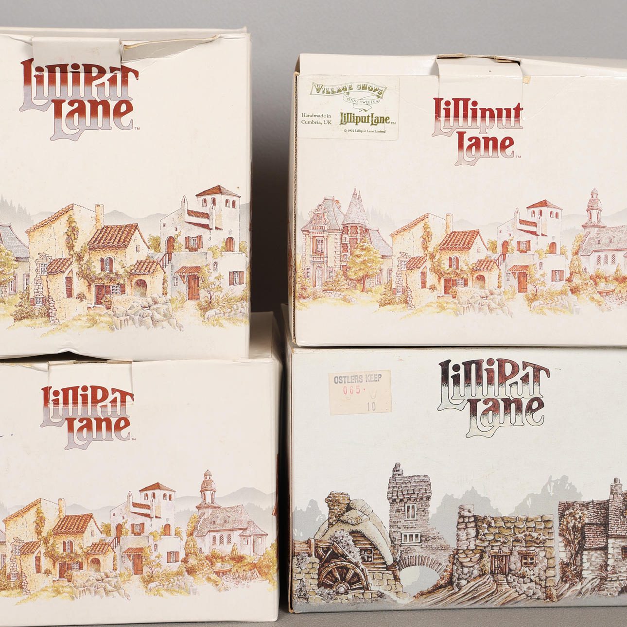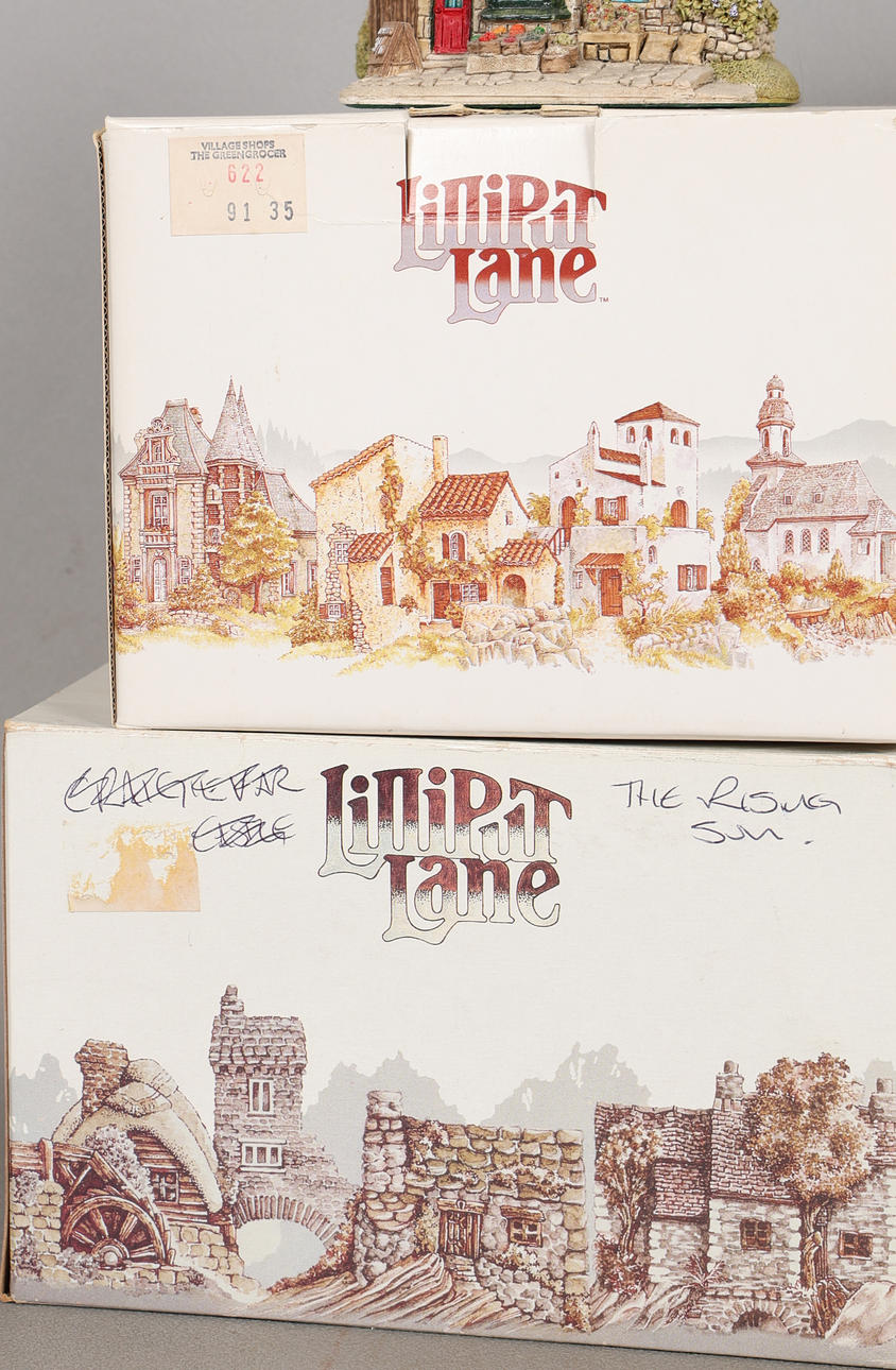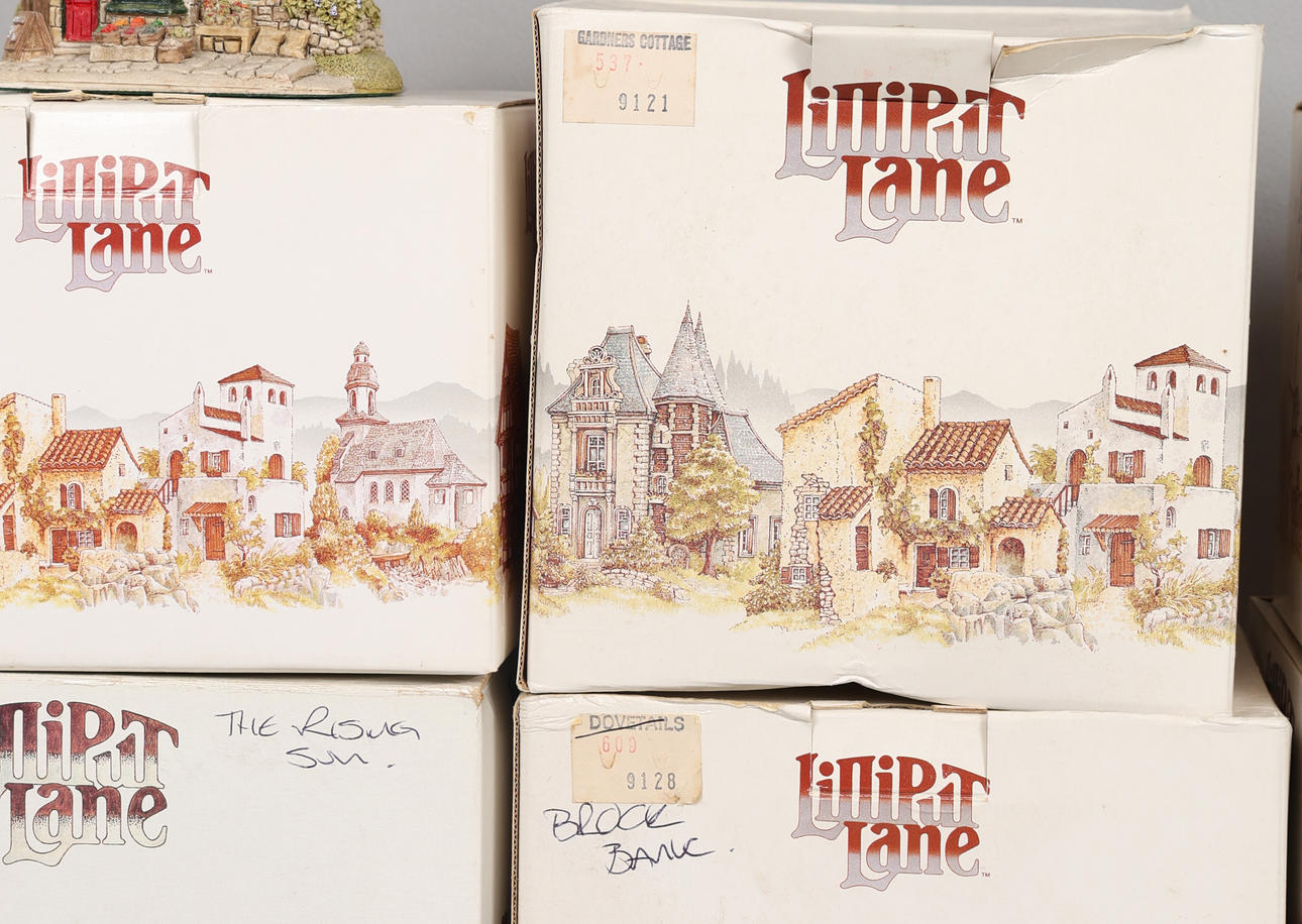 To include Ostlers Keep, Penny Sweets, Brock Bank, The Rising Sun, Gardners Cottage, and The Green Grocer, largest box measuring 16cm x 16cm x 16cm. (6).