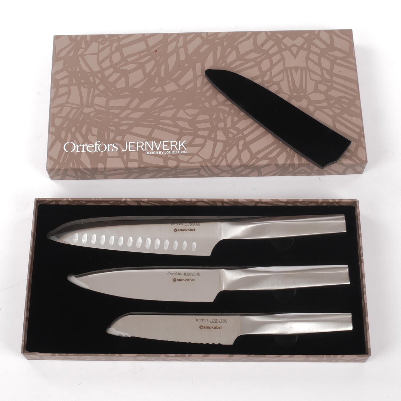Knife set with 3 kitchen knives Jon Elisaon, Orrefors Jernverk.