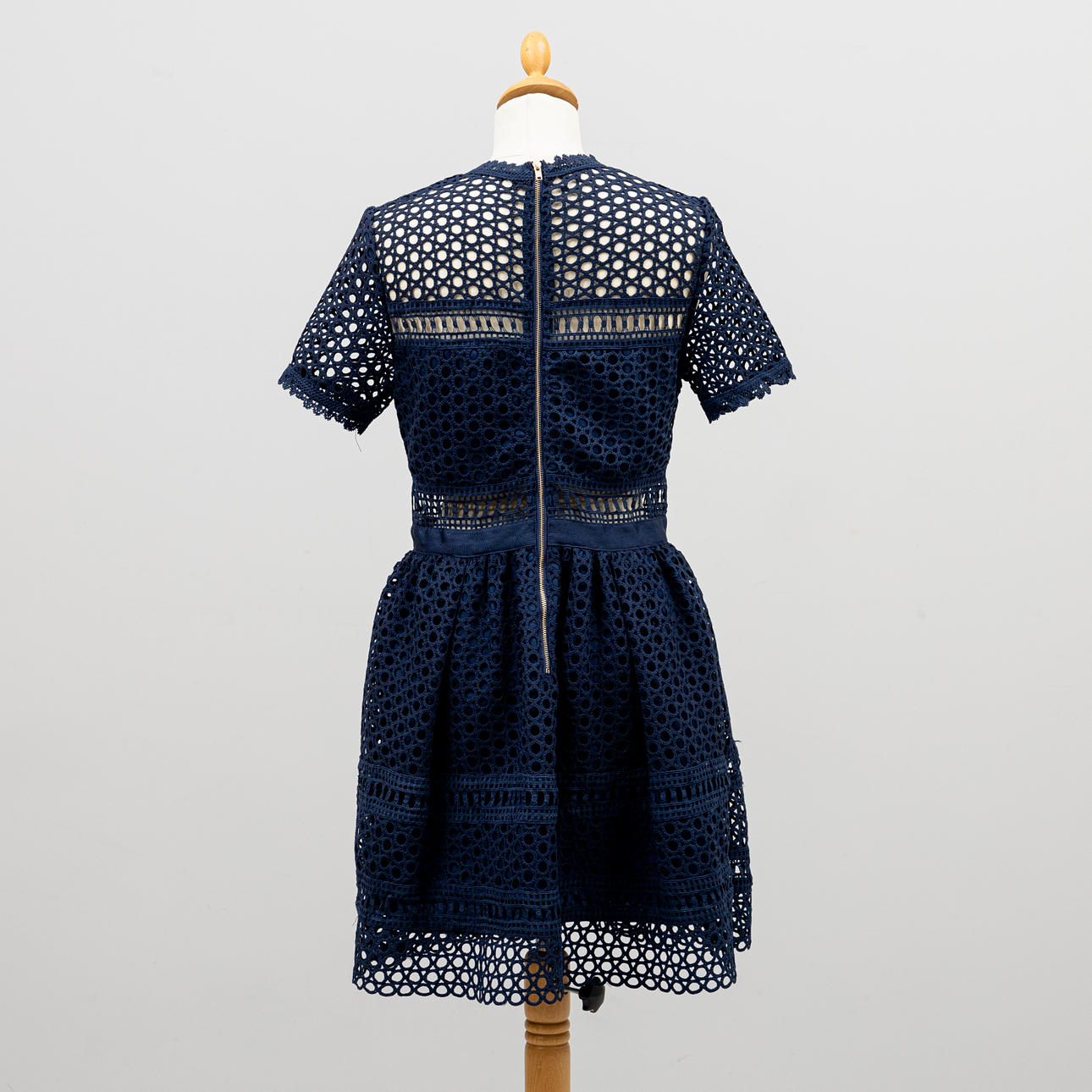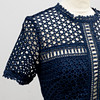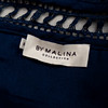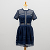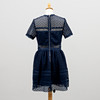 Dark blue lace dress with matching petticoat. Short sleeve with marked waist, gold-colored zipper at the back. Tagged “BY MALINA COLLECTION”. Enl Marking Size S.