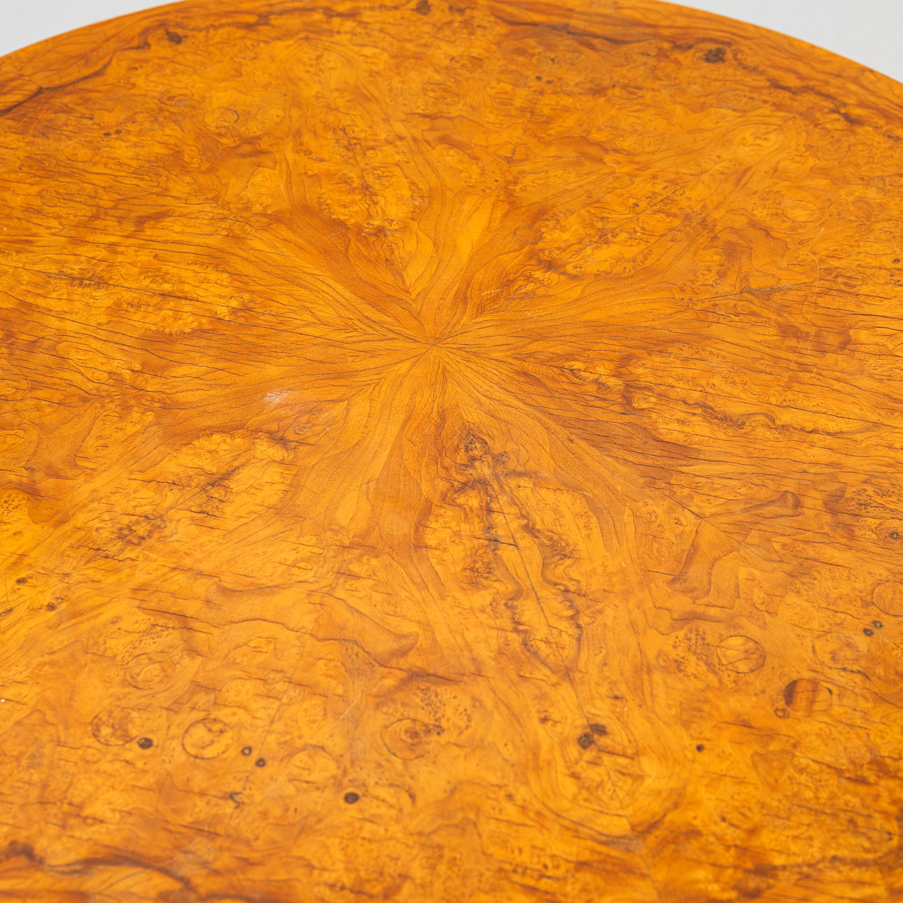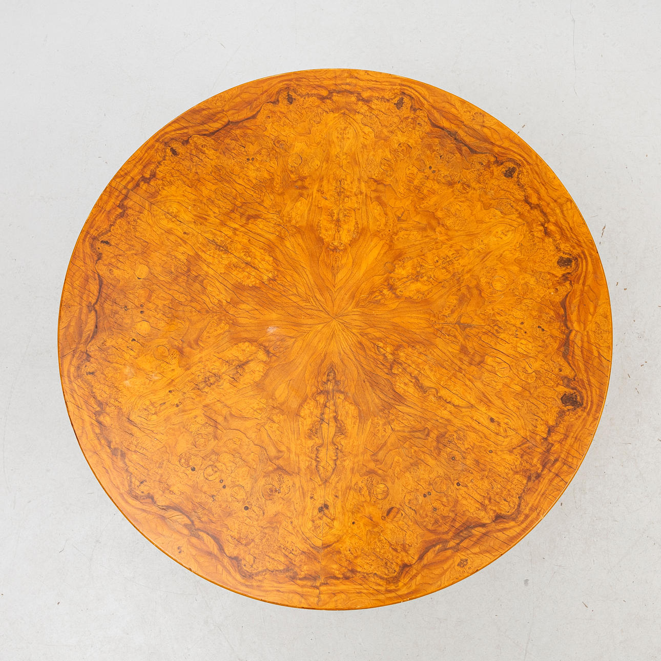A 1940s root-veneered coffee table.