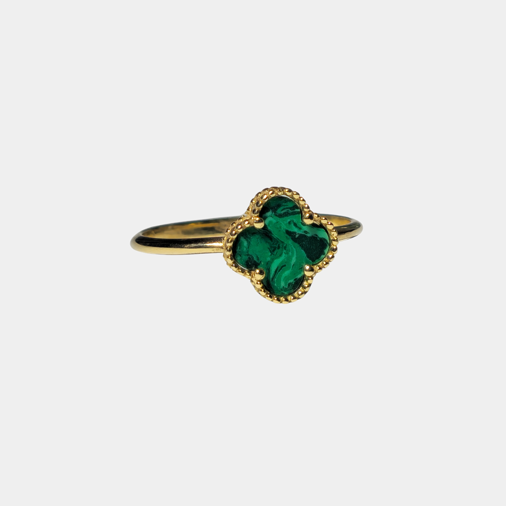 5003090. RING IN GOLD AND MALACHITE CLOVER.