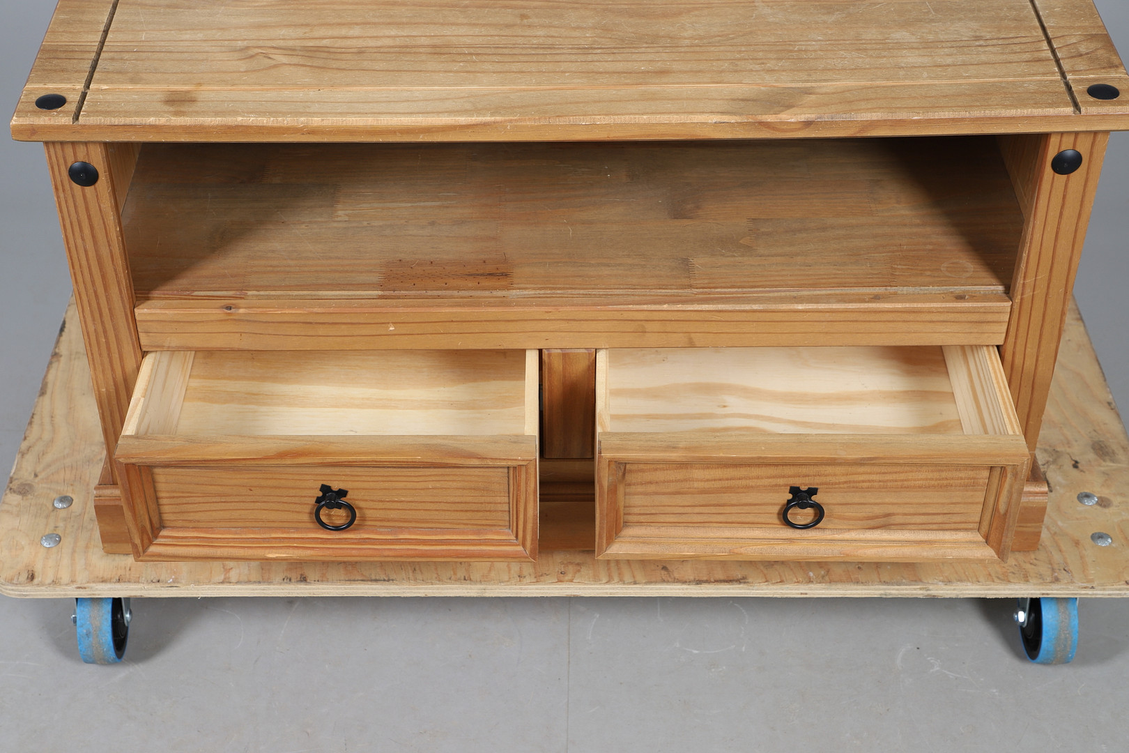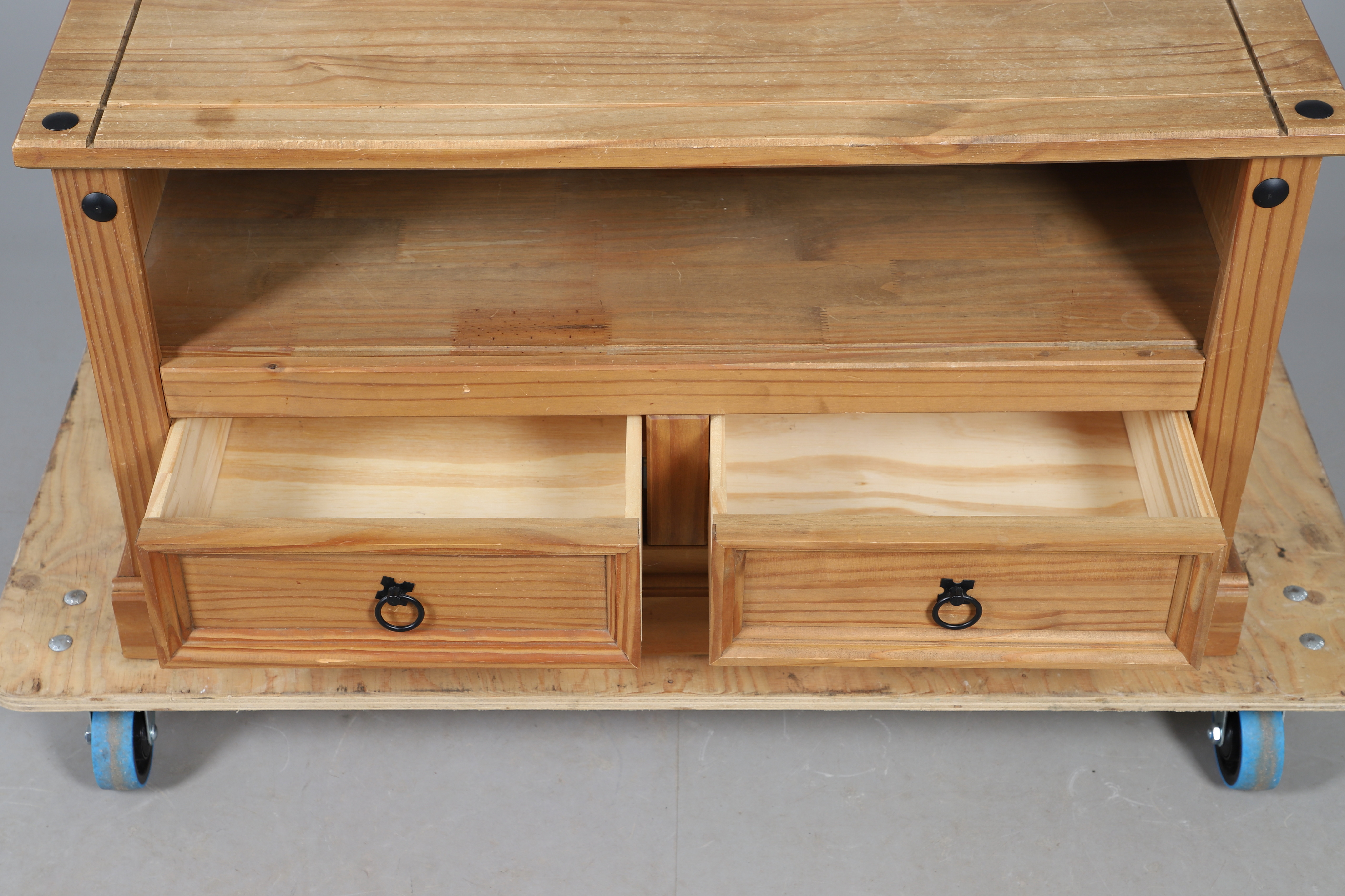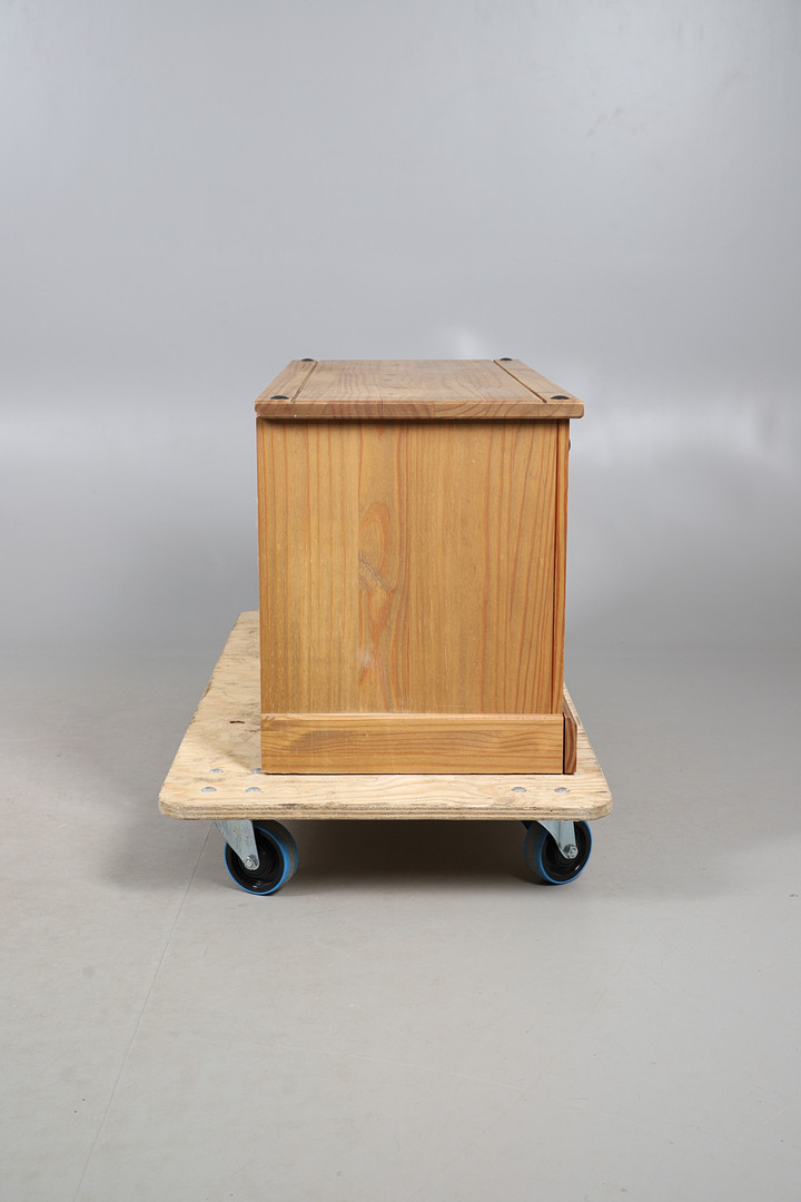 5003100. A MODERN PINE TV STAND.
