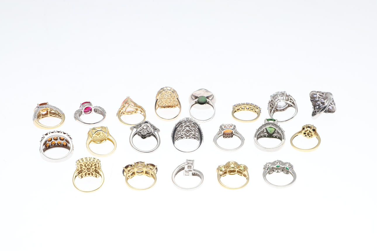 5003133. A QUANTITY OF SILVER AND GEM SET RINGS.