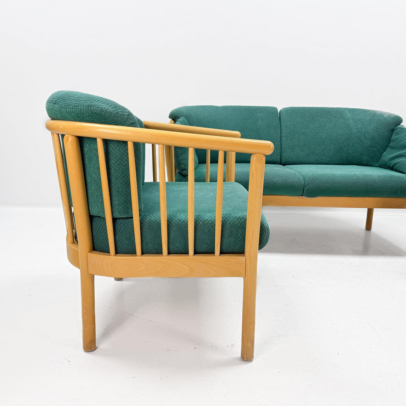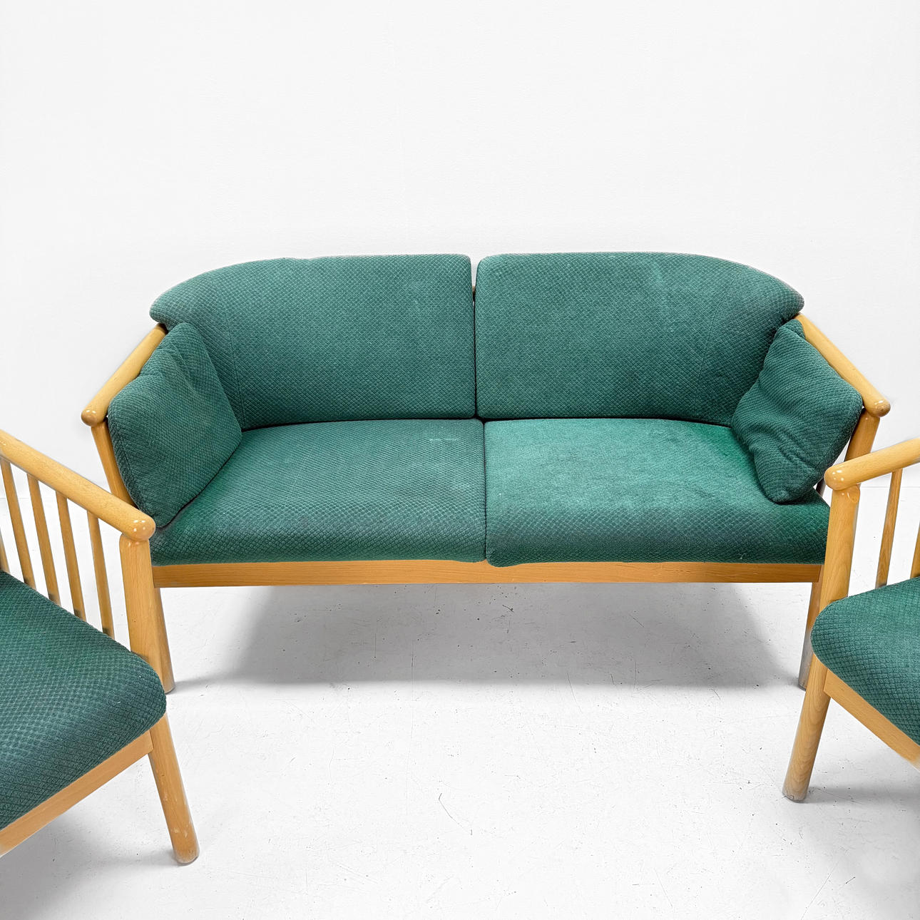 Height 82 cm incl. cushion Depth 65 cm Length sofa 146 cm Width armchair 70 cm.