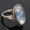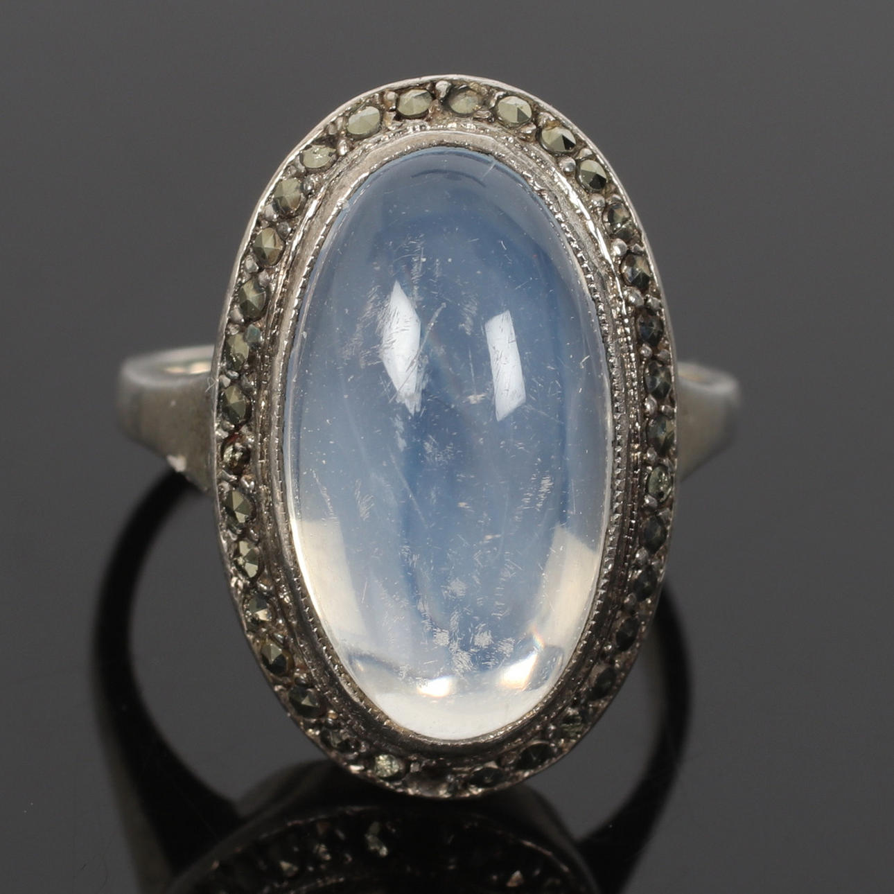 Ring in silver with cabochon-cut stone and marcasites. Silver ring, jewellery, vintage. 20th century. Size/inner diameter 16, circumference 50 mm. Gross weight 6.5 grams.