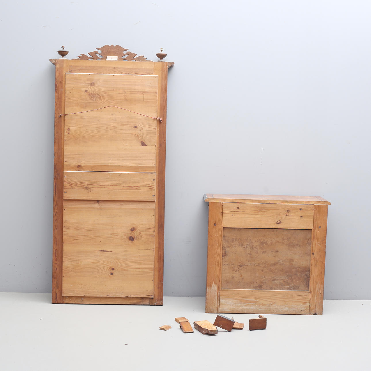 Mirror height 160 cm, width 78 cm Console table height 70 cm, width 78 cm, depth 37 cm.