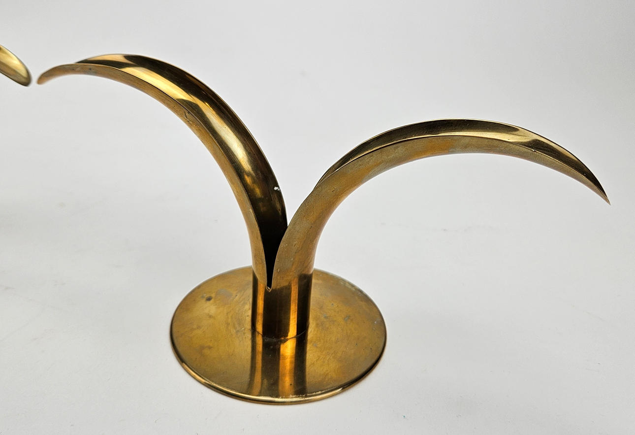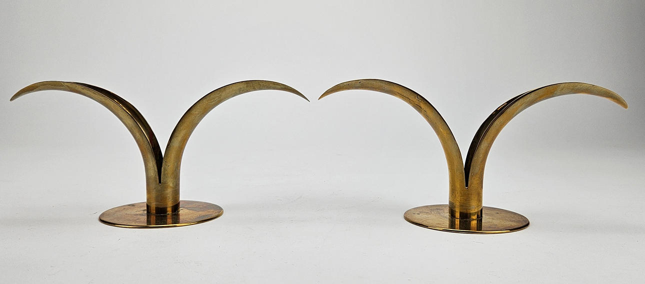 Candlesticks, a pair, brass, Lily model, length approx. 20 cm.