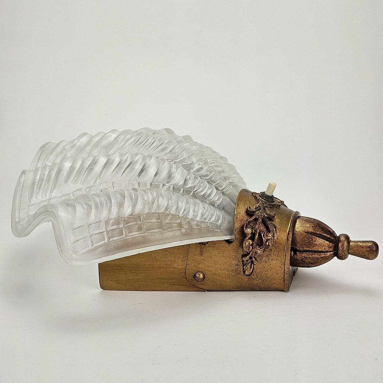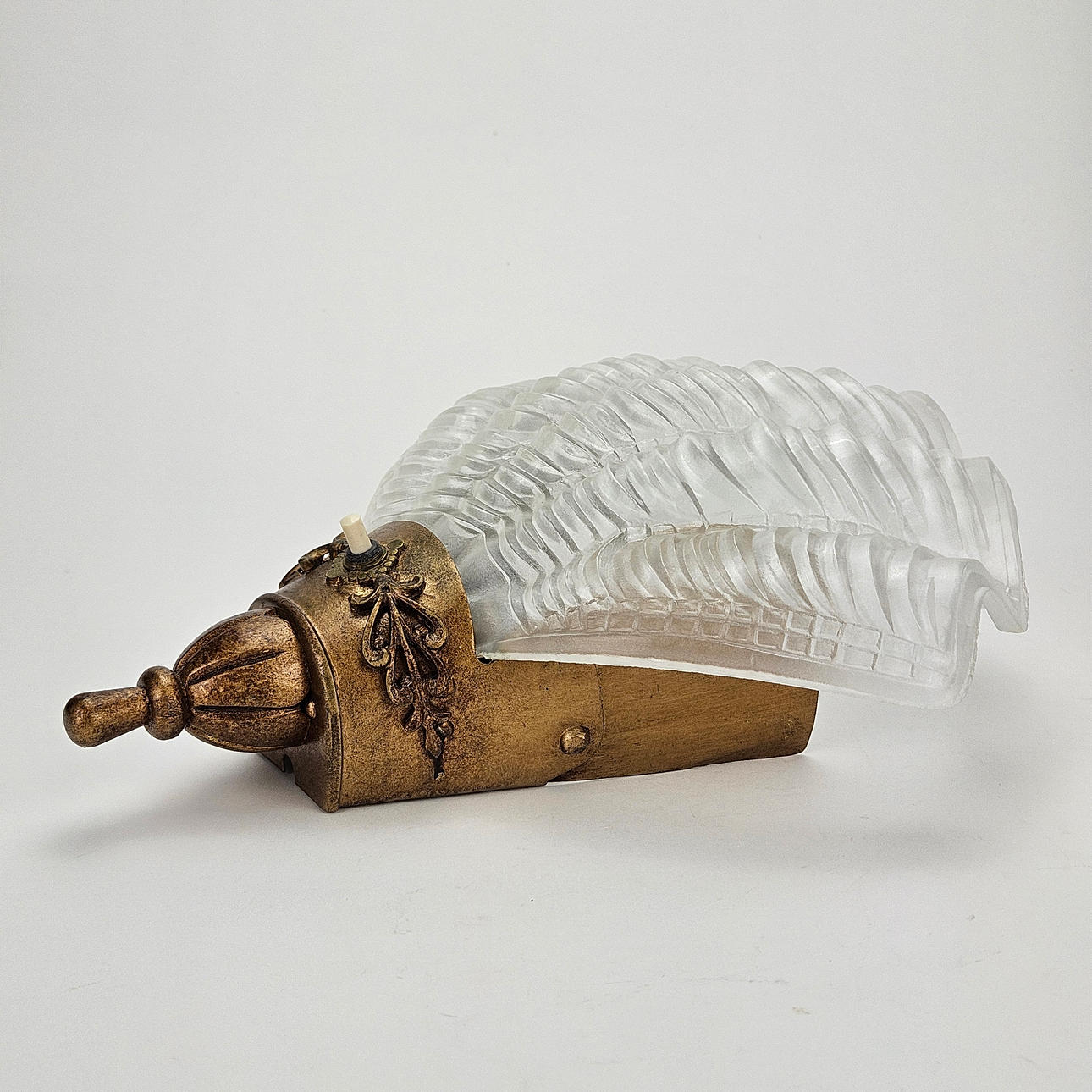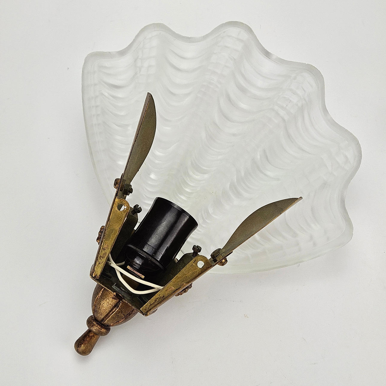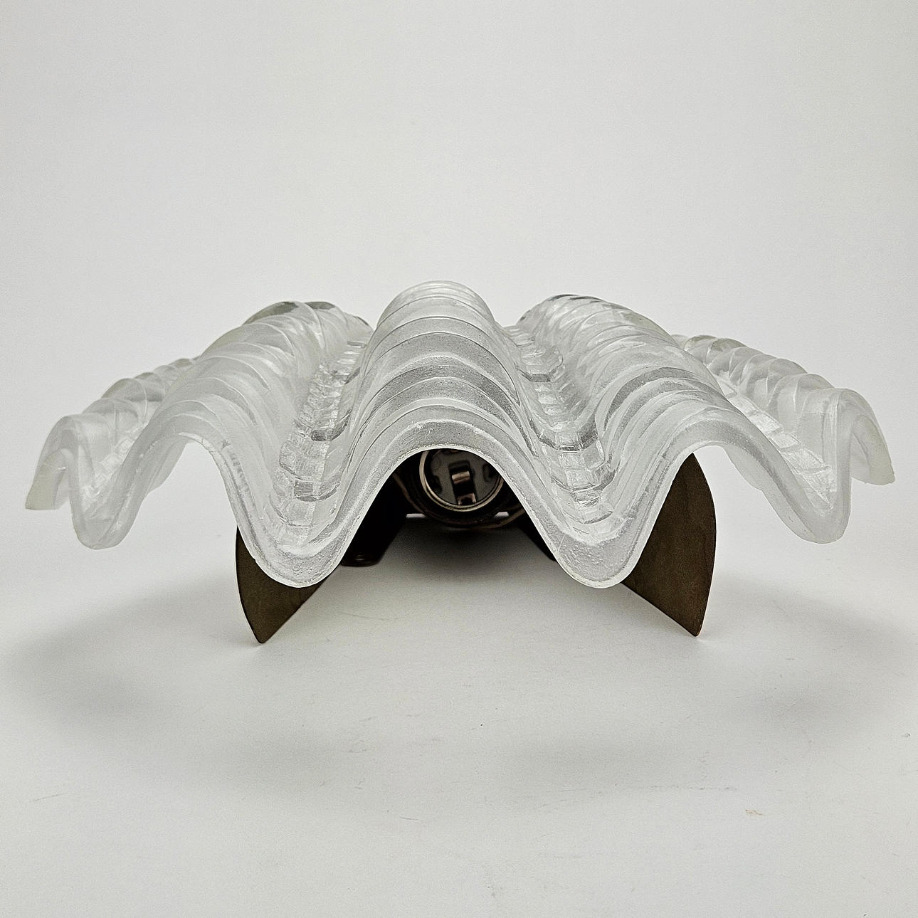 Patinated metal, seashell shaped glass screen, approx. 30x27 cm.