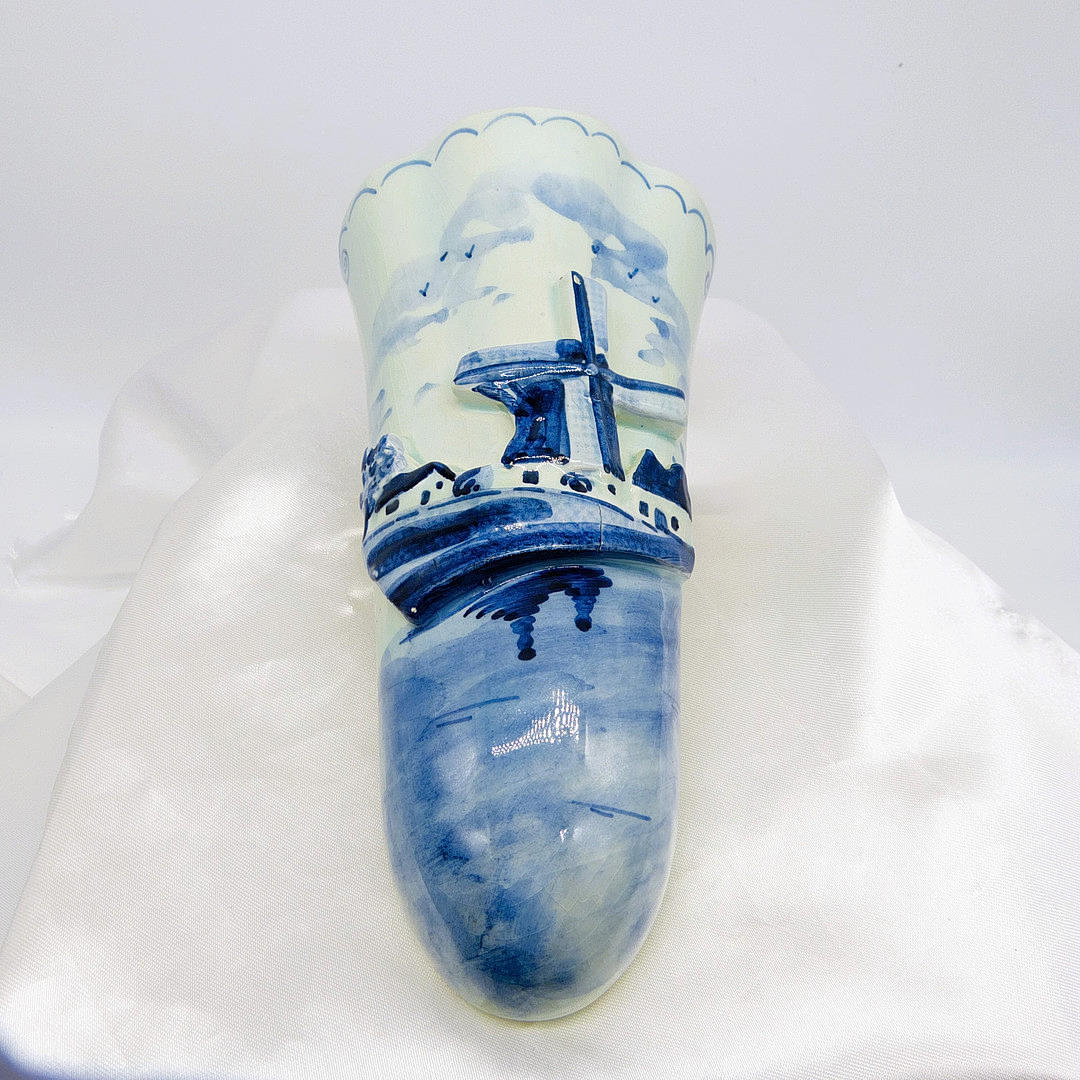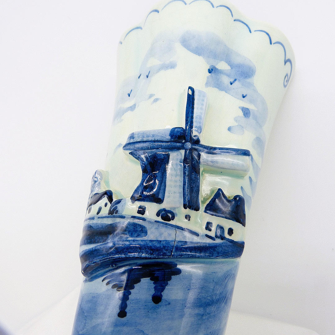 Delft Hand Painted Flower Holder / Wall Pocket With Wall Mount Eyelet