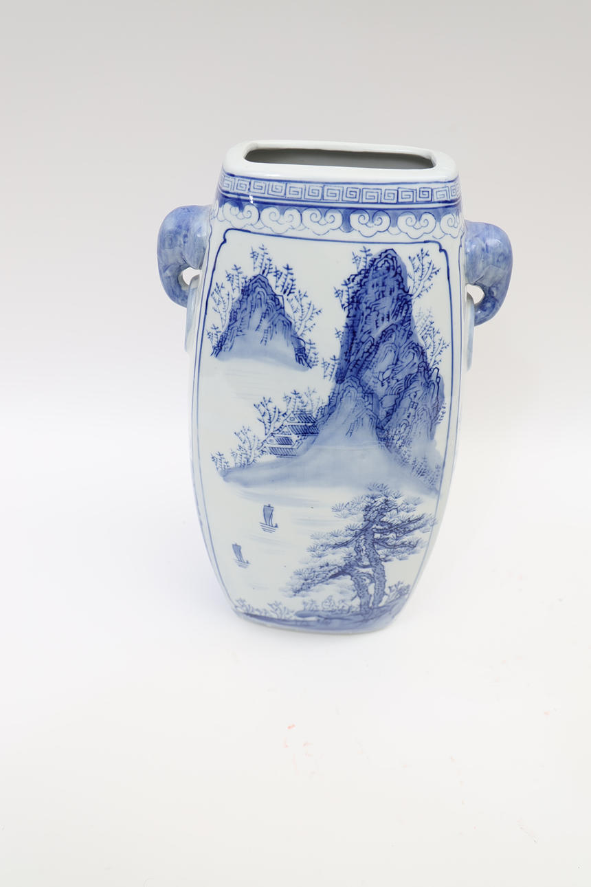 With hand painted landscape decor. Double hankles with elephants.