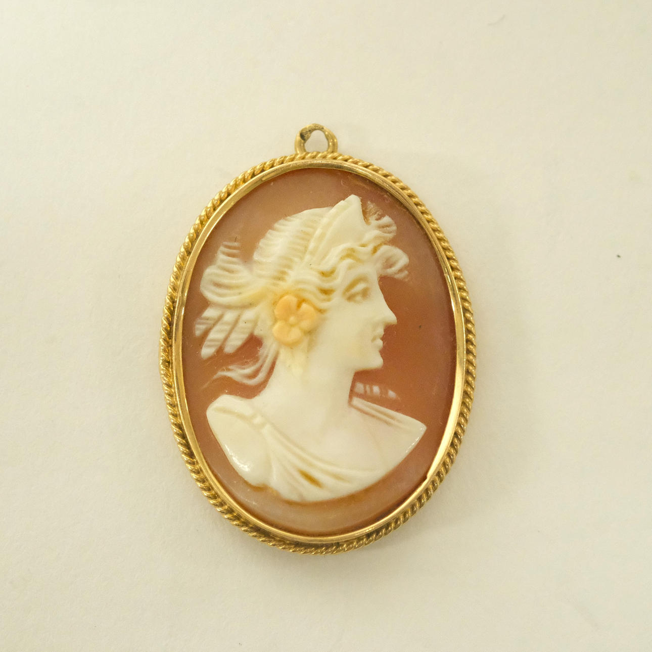 Pendant with camé, dimensions 2,9x2,1cm, total weight approx 4,3 grams.