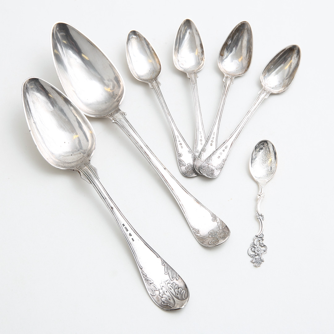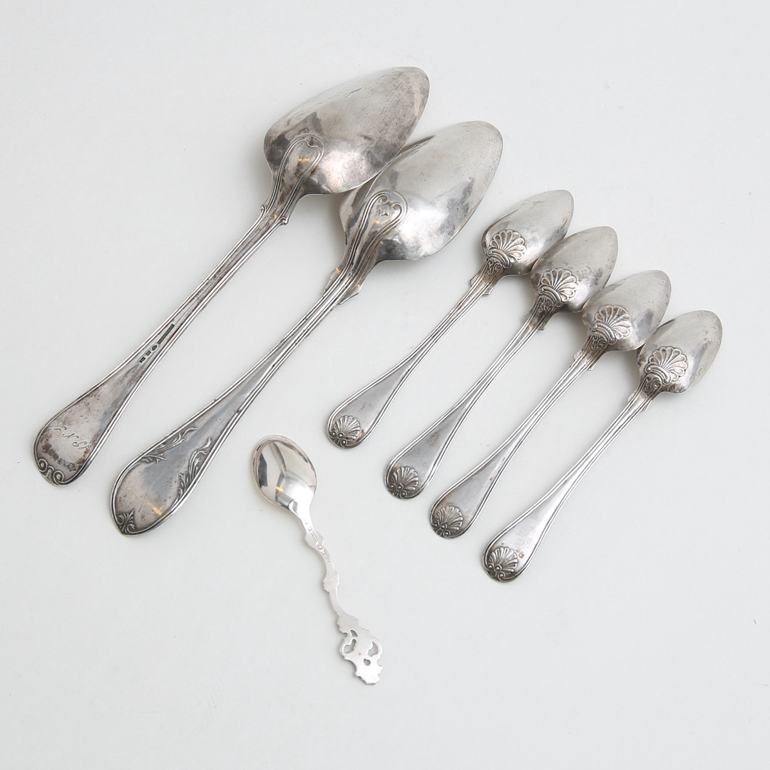 5003855. SPOONS, 7 pcs, silver, 161 grams.