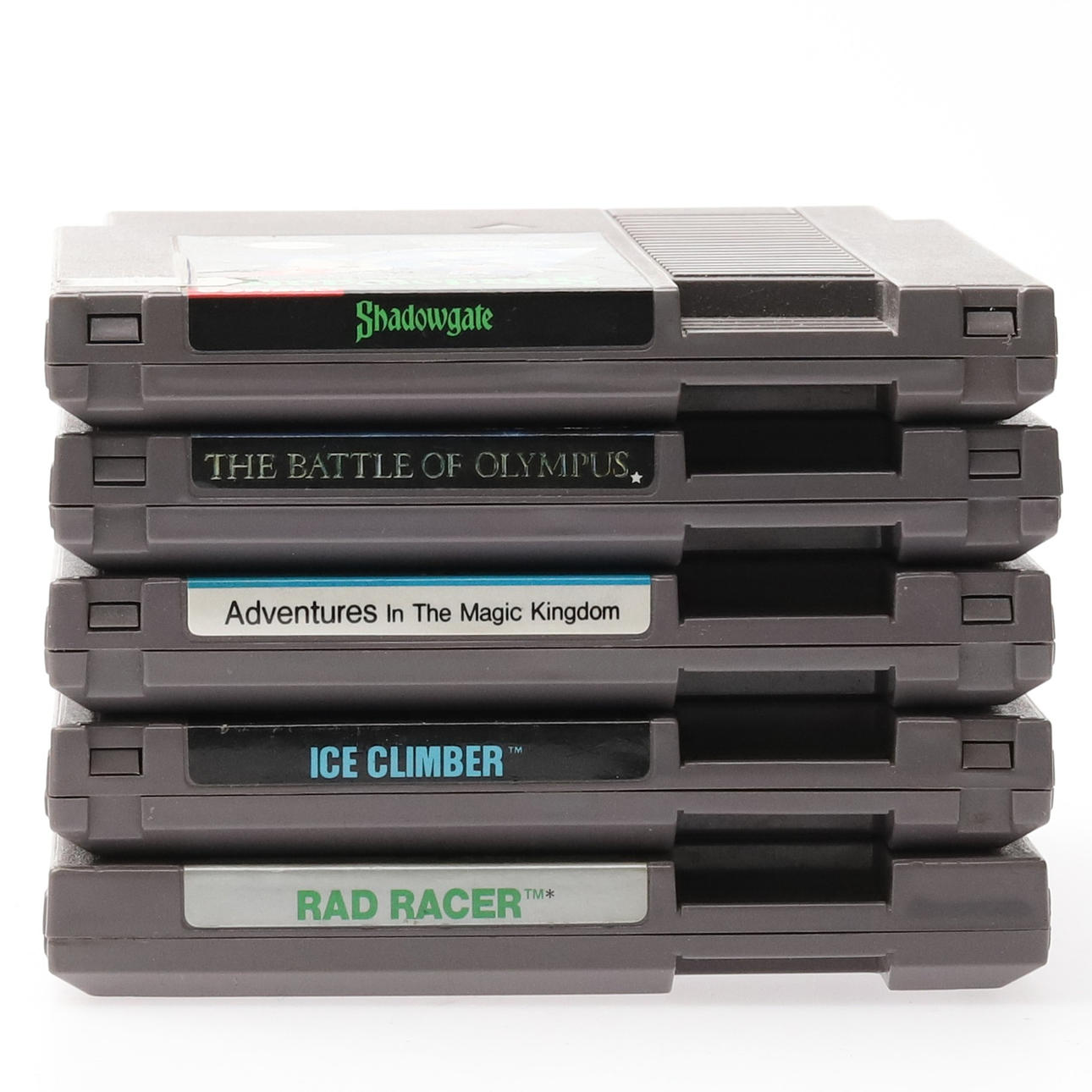 2 st Castlevania 2, 2 st Faxanadu, Mach Rider, Devil World, Journey to Silius, Turtles, Rad Racer, Ice Climber, Talespin, Disney Adventures, Robo Warrior, Probotector, The Battle of Olympus, Shadow Warriors 2, Shadowgate, Deja Vu, Super Mario Bros, Tennis, Bayou Billy, Link.