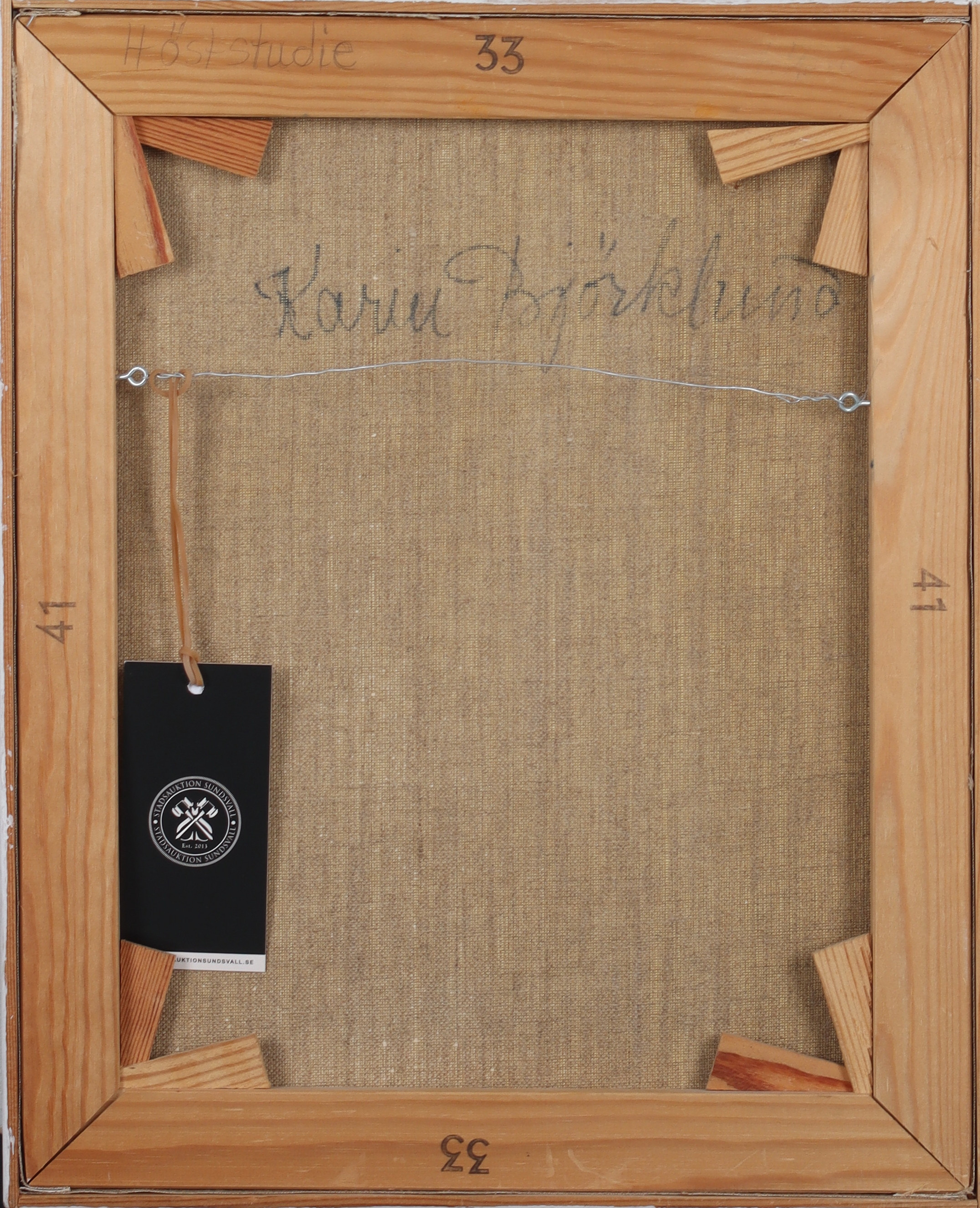 5003913. KARIN BJÖRKLUND. “Autumn study”, oil on canvas, monogram signed.