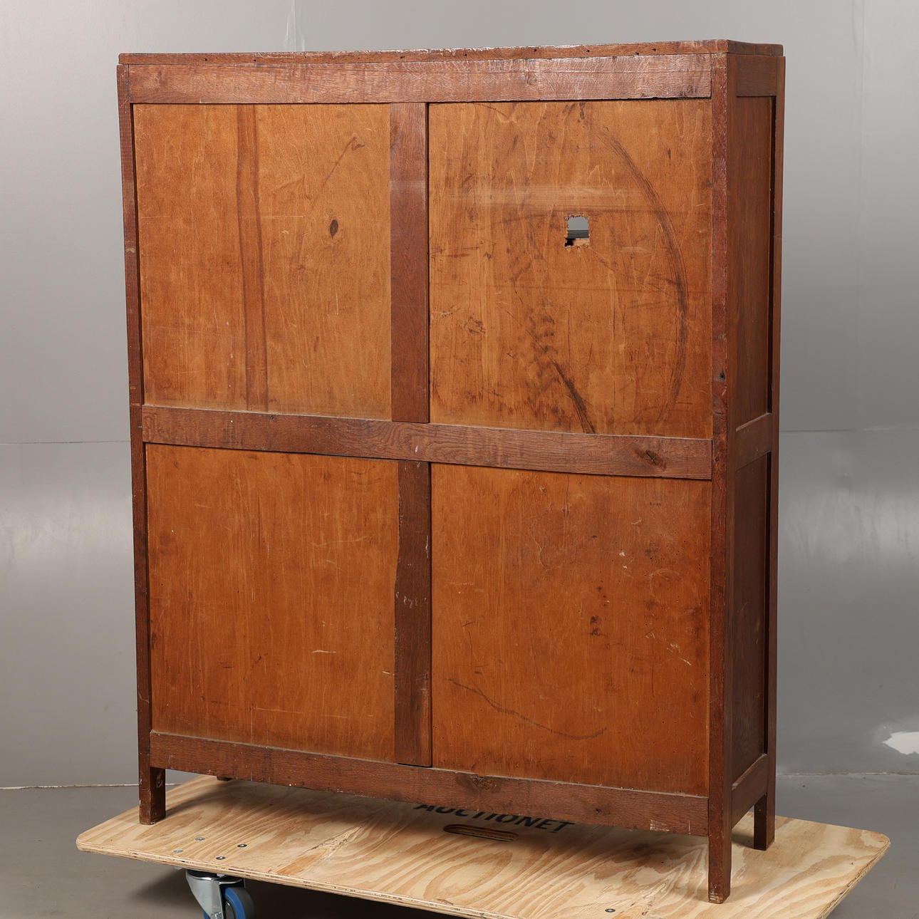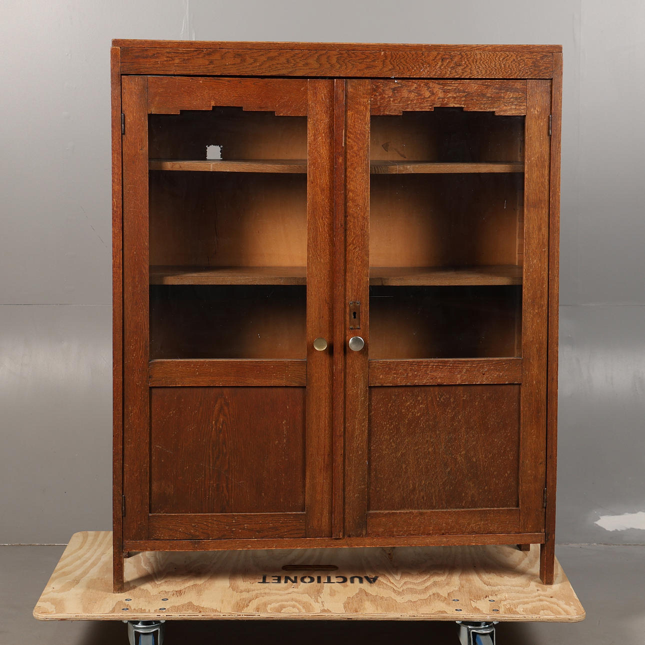 Having a pair of glazed doors enclosing adjustable shelves, 126 cm high, 100 cm wide, 30 cm deep.
