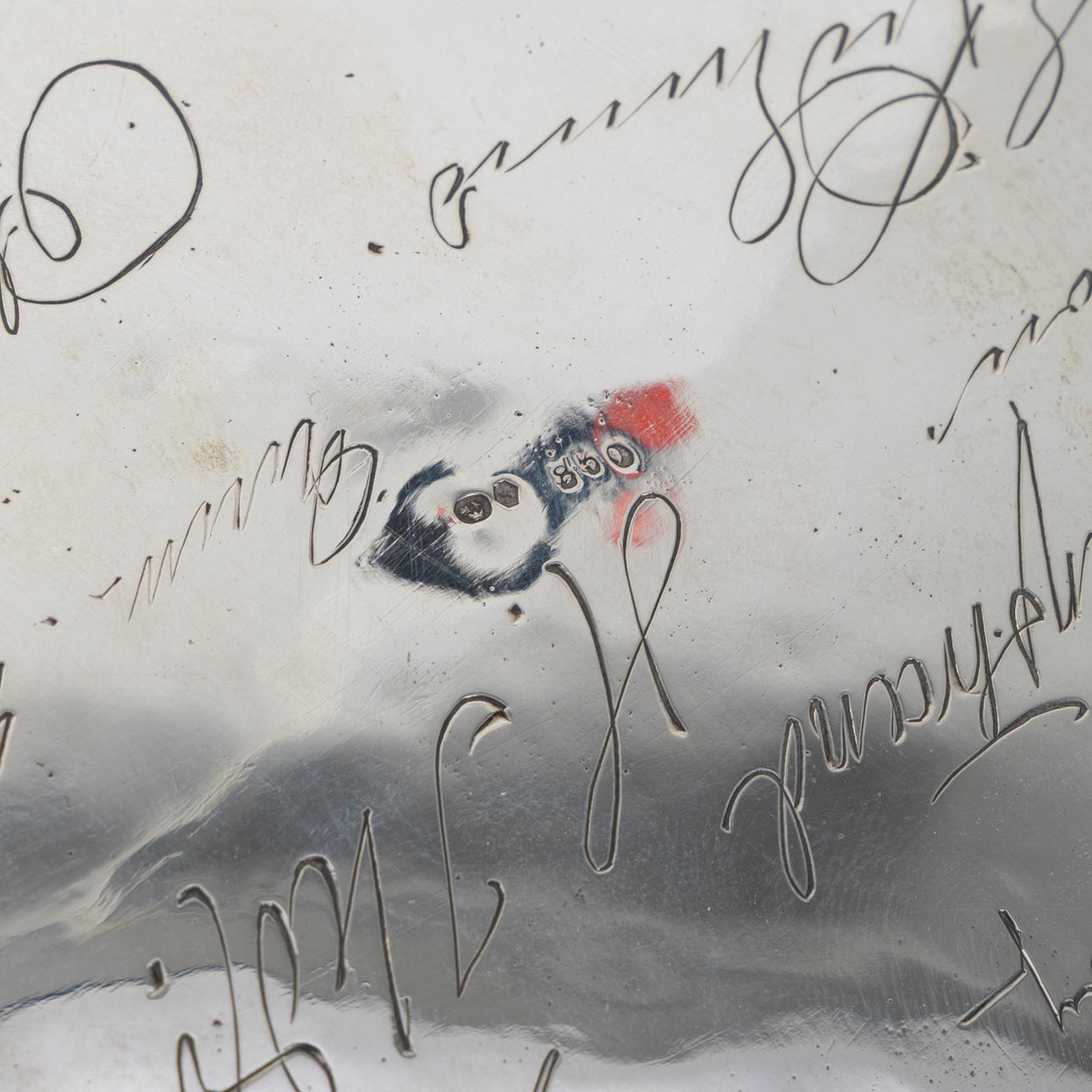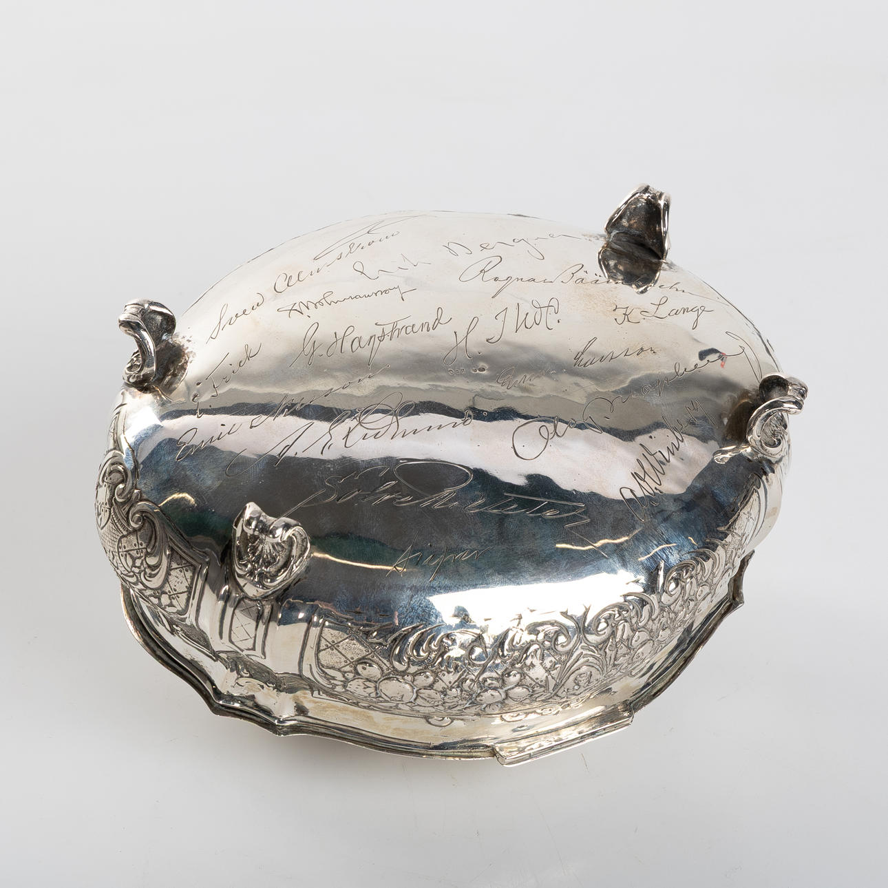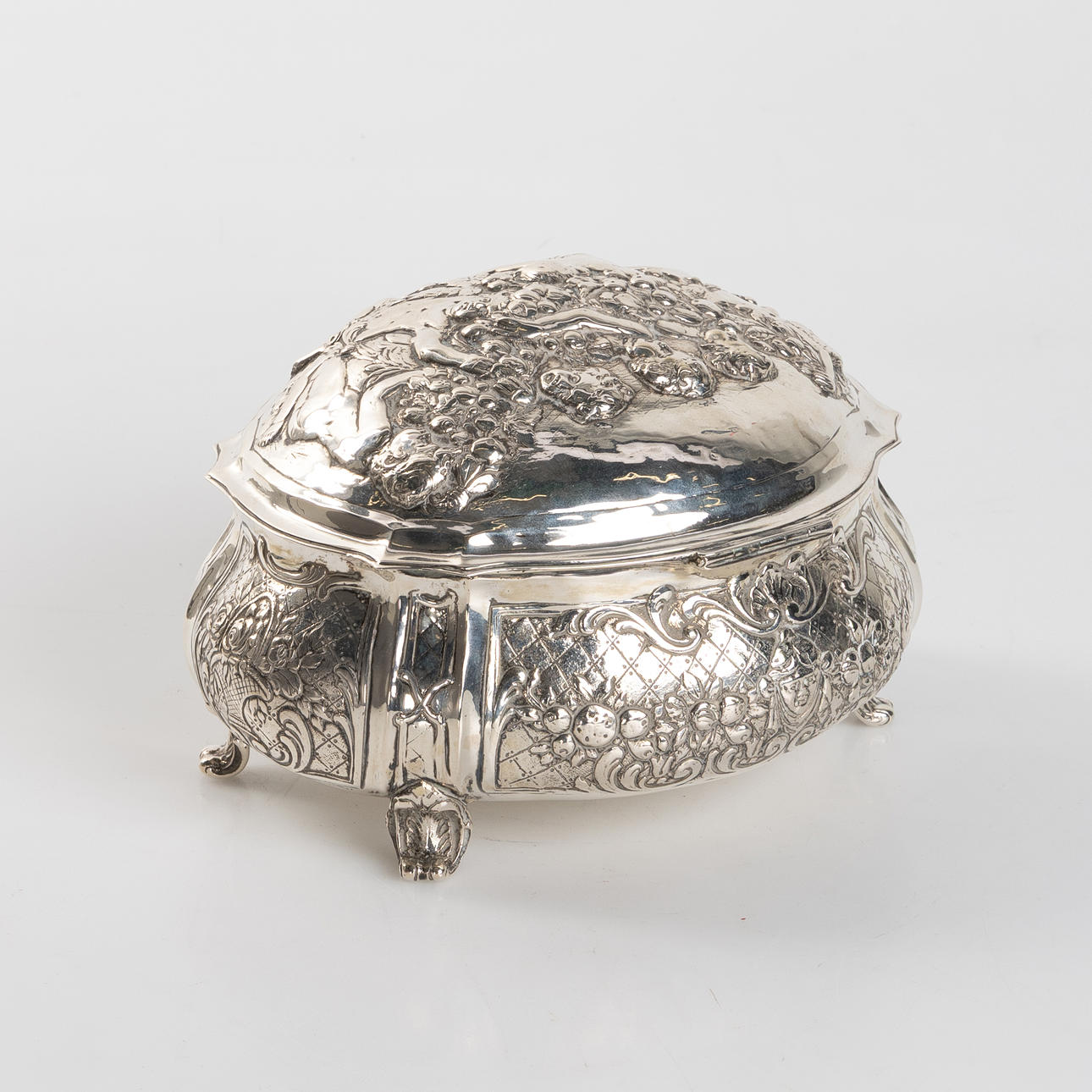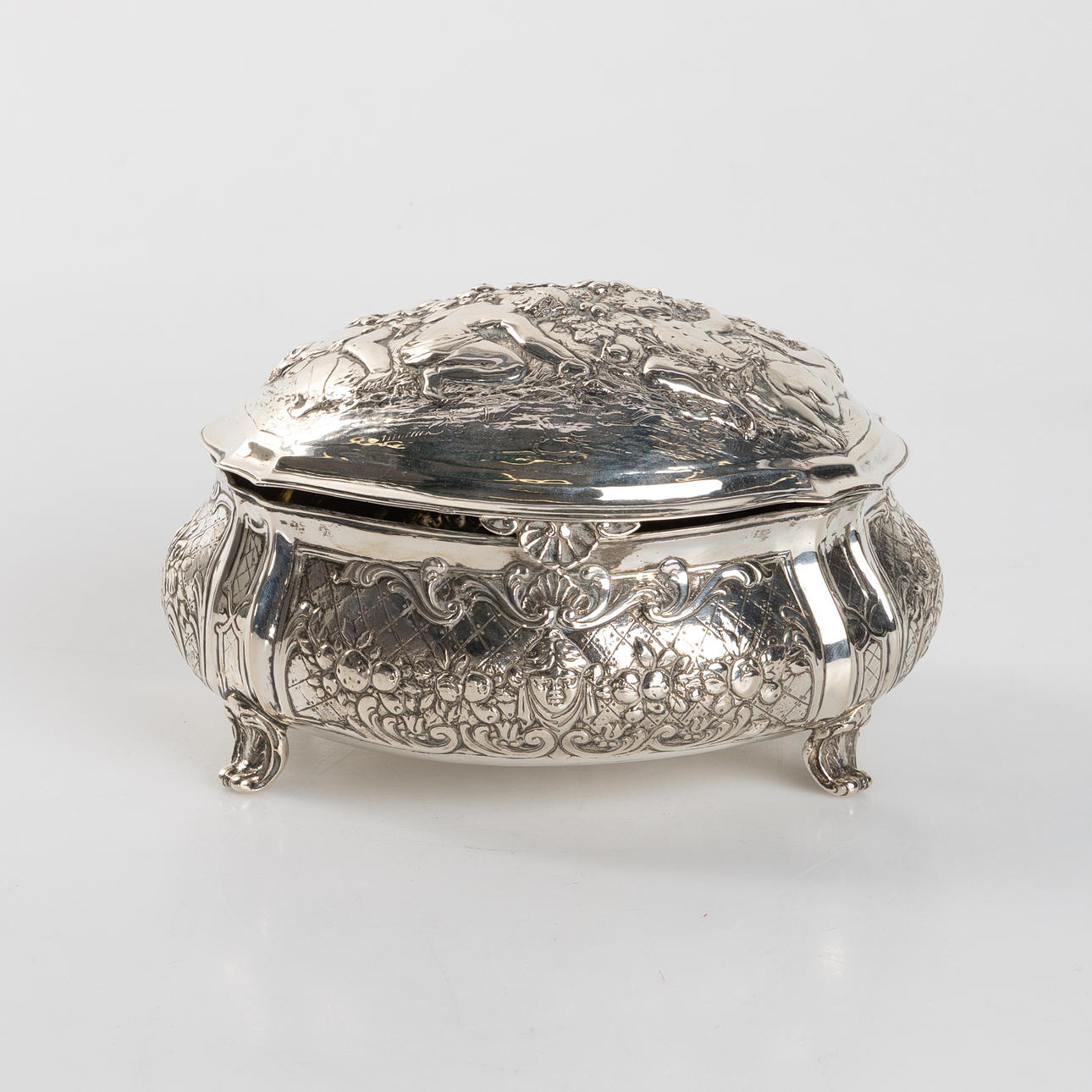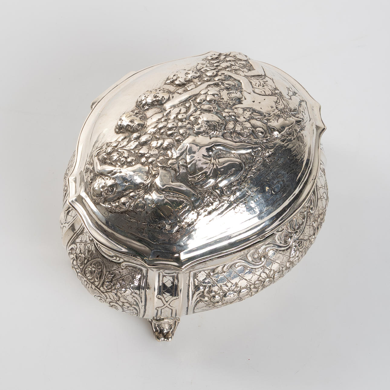 Stamped, embossed decor, interior gilt Height approx. 13, 19 x 14 cm Weight approx. 680g.