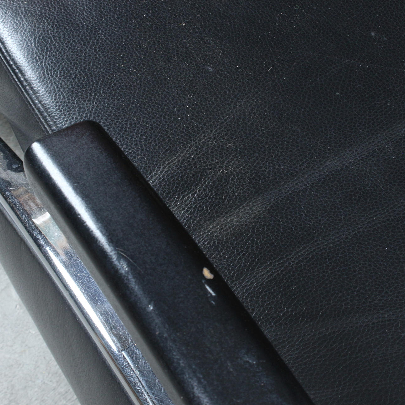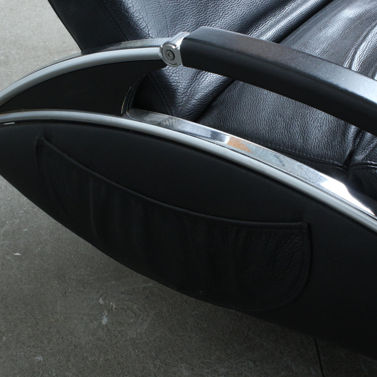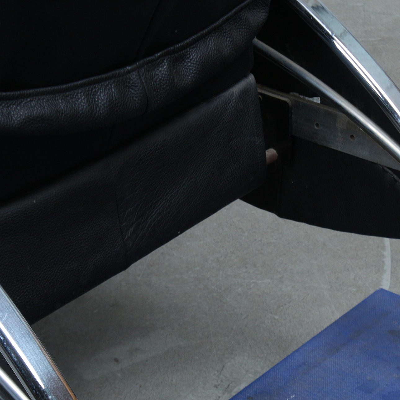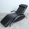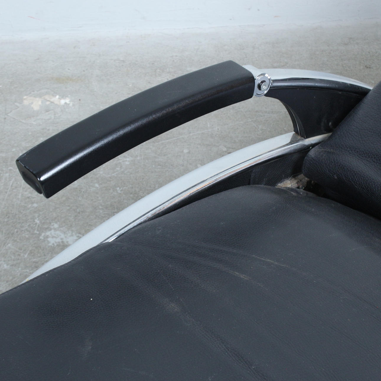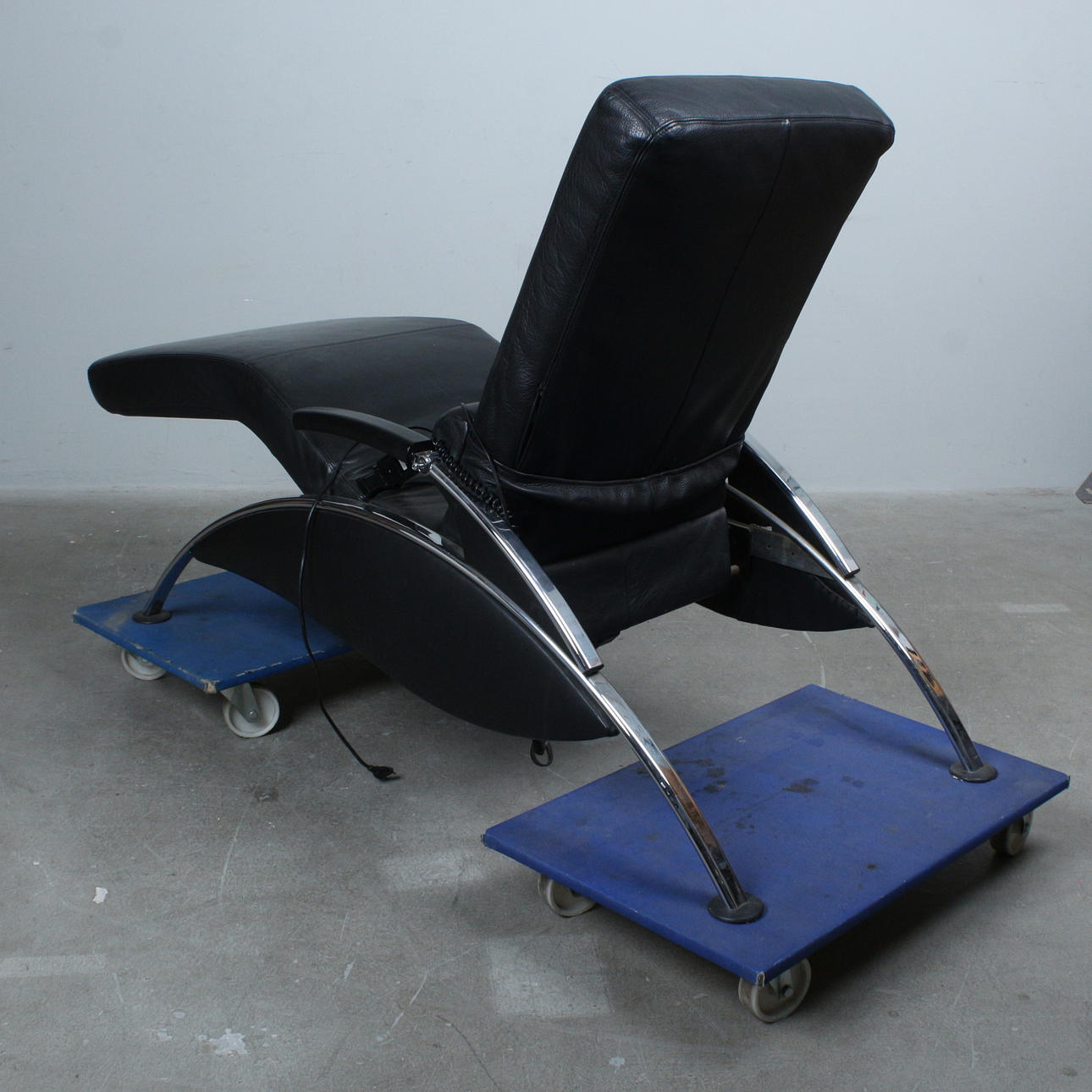 Dewert, electronic lounge chair, chrome, leather. Adjustable via remote control. Dimensions: H: 90 cm. W: 64 cm. D: 179 cm.