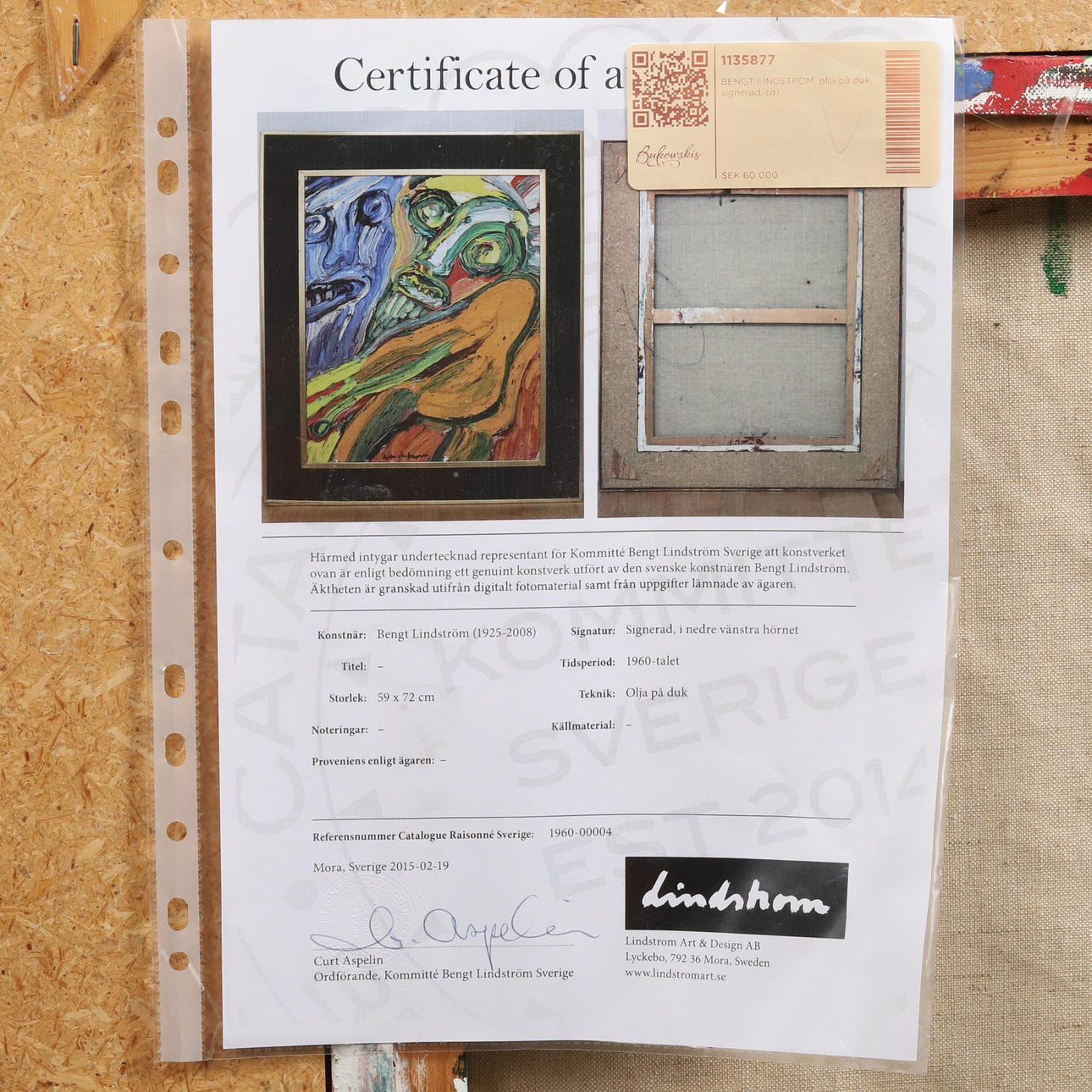 Certificate of authenticity from the Bengt Lindström Sweden committee by Curt Aspelin accompanies the work.