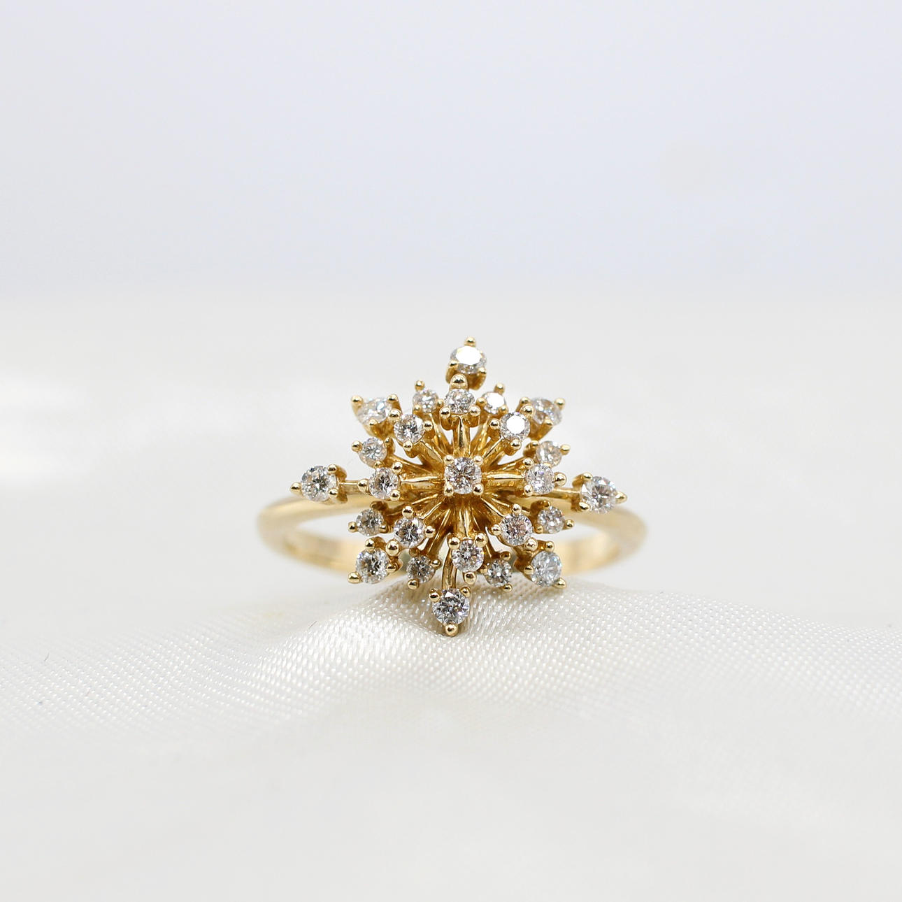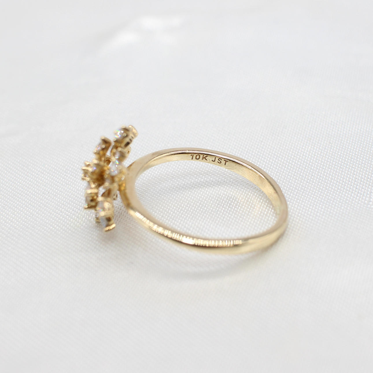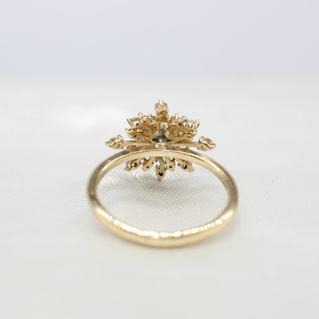 A 10K Yellow Gold (Stamped 10K) Round Brilliant Cut Diamond Set "Star Burst" Style Ring.