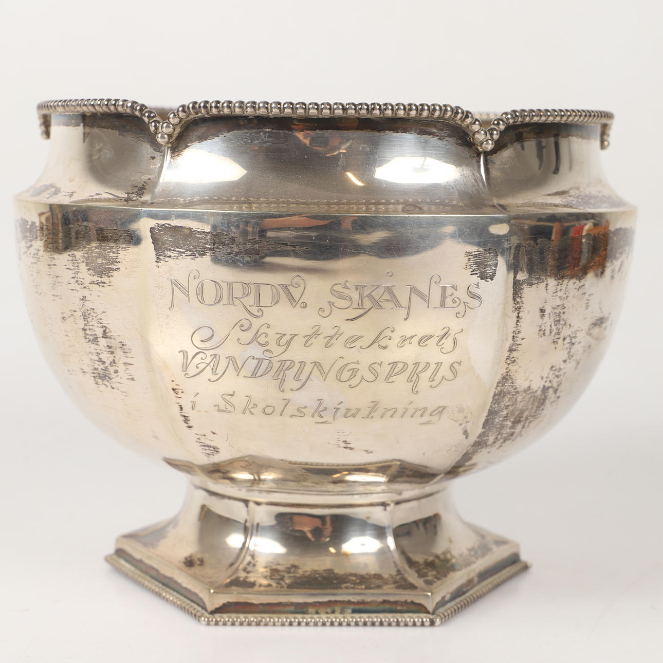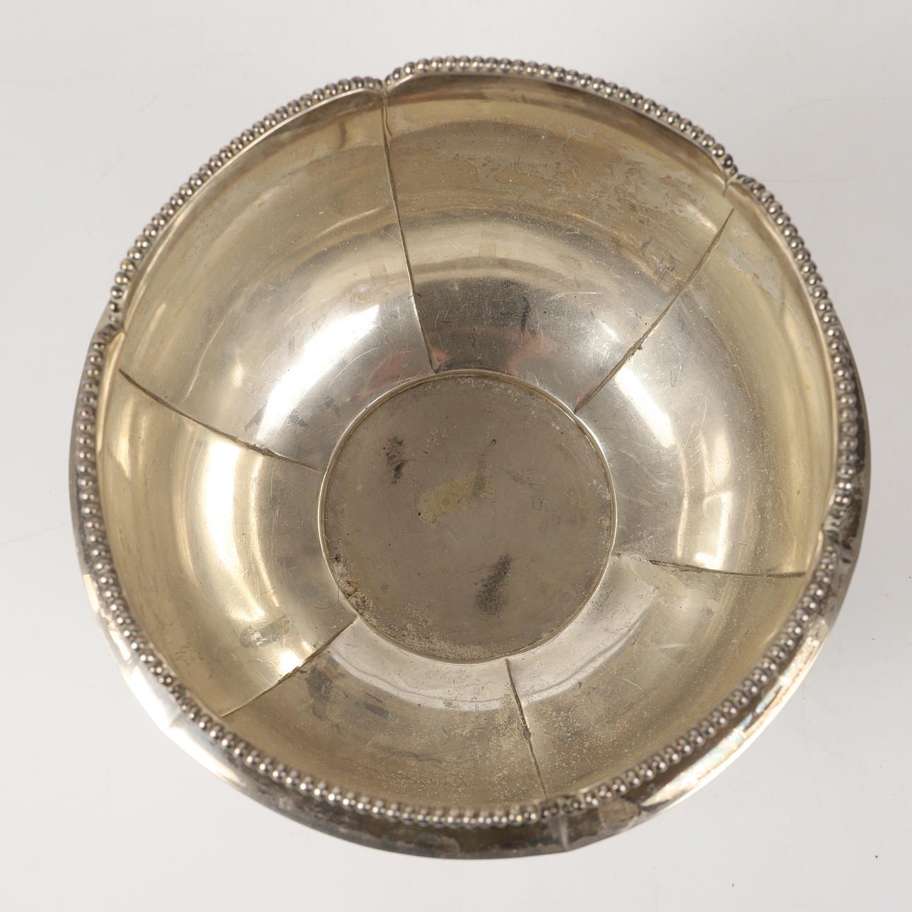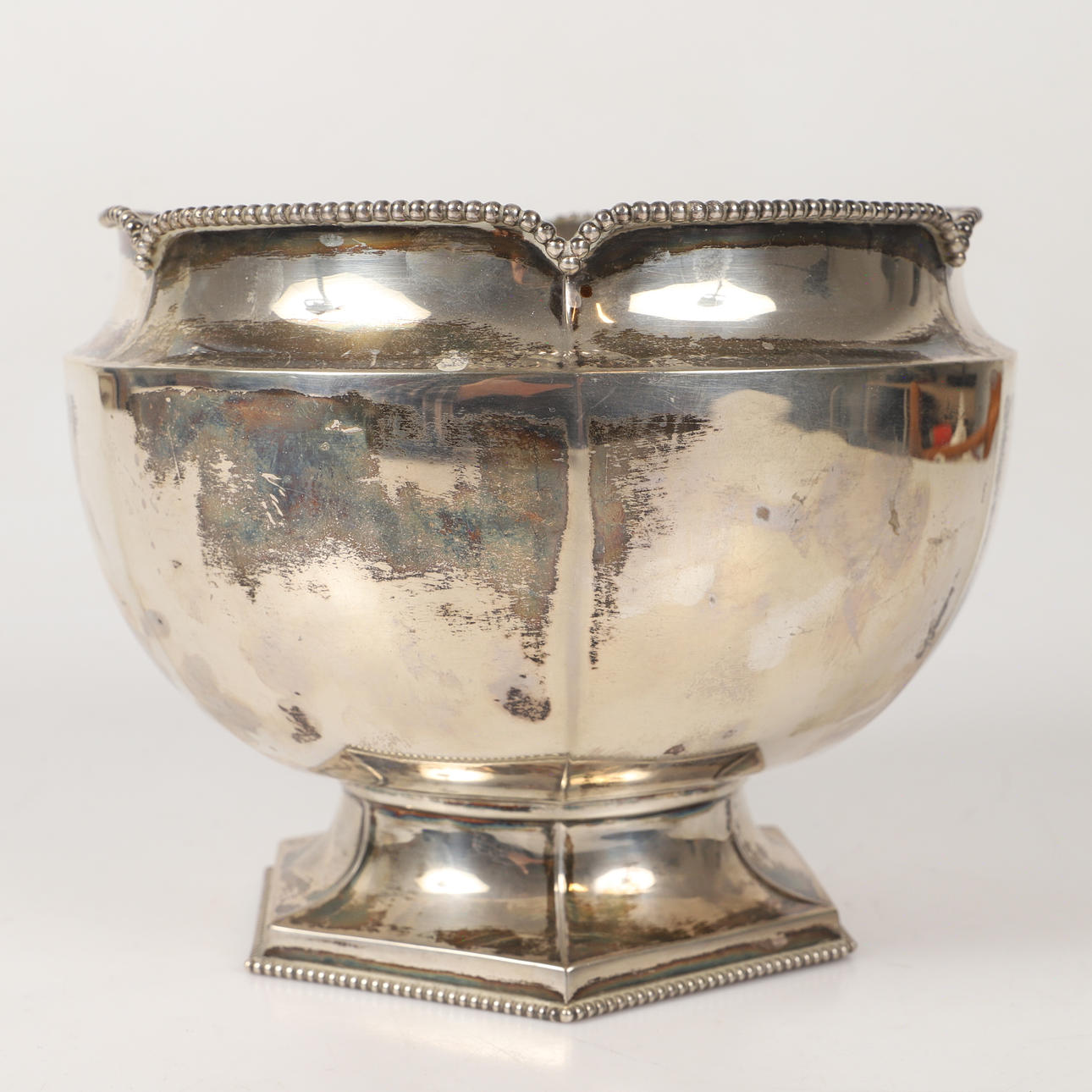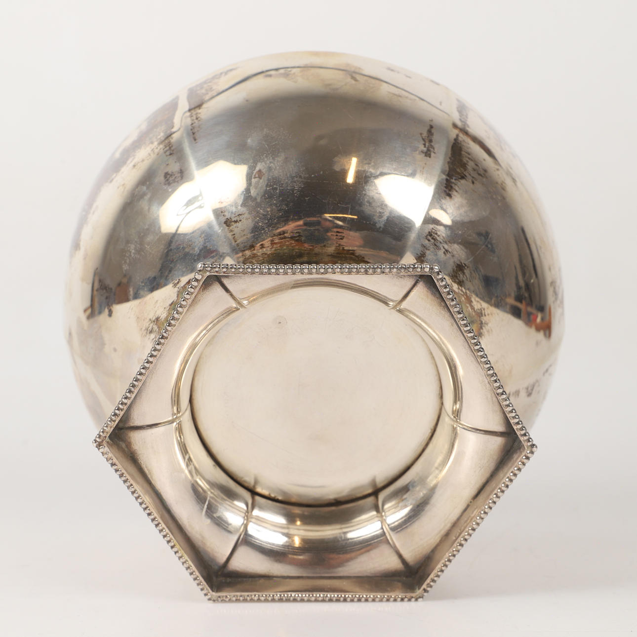 5004102. BOWL ON FOOT, silver with hexagonal base and pearl border.