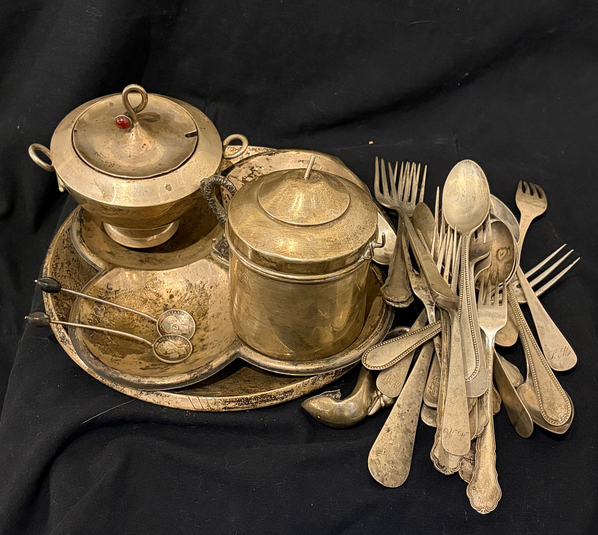 5004147. Various objects in silver and glass, 20th Century.