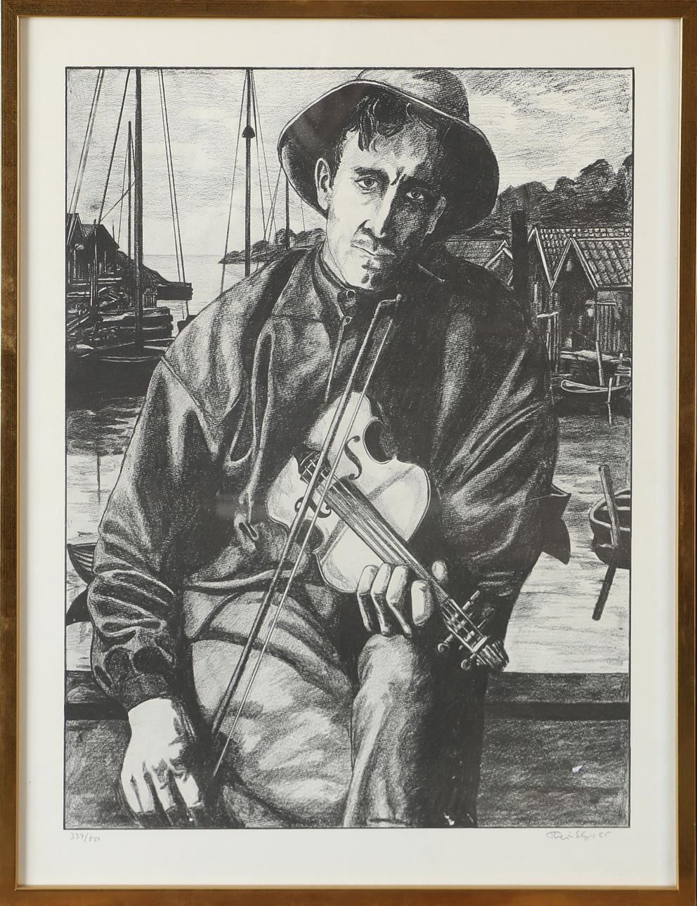5004166. THEIS ELJAS. Violin playing man, lithograph, signed -85.