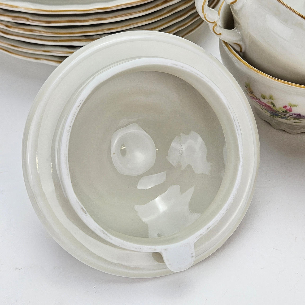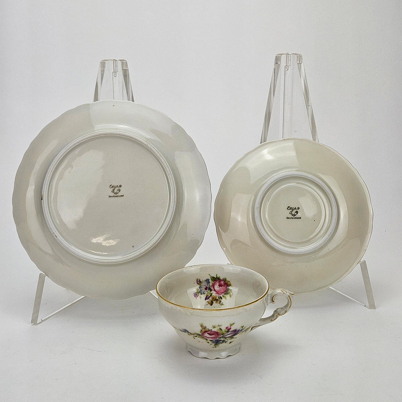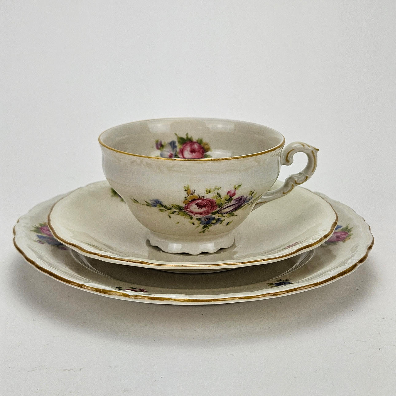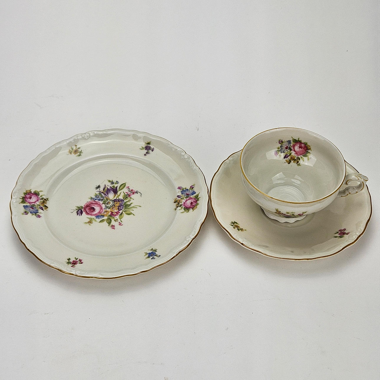 6 coffee cups with saucer, 6 side dishes, coffee pot, sugar bowl and cream jug on tray.