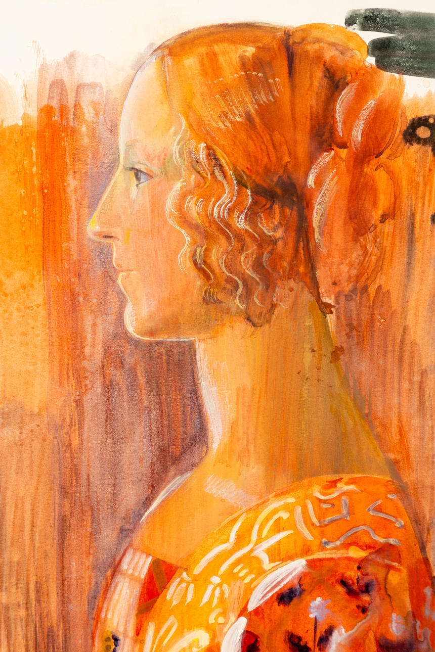 August Ohm (b. 1943), Giovanna Tornabuoni, watercolor, 1986, signed in pencil on the lower right side, ca. 71 x 55 cm, framed behind passe-partout and glass, with frame ca. 91 x 77 cm