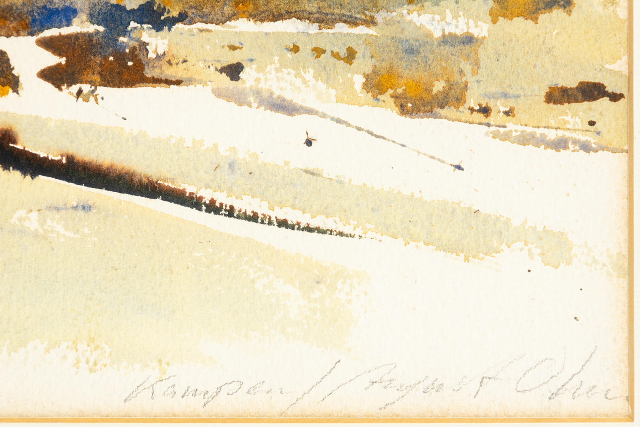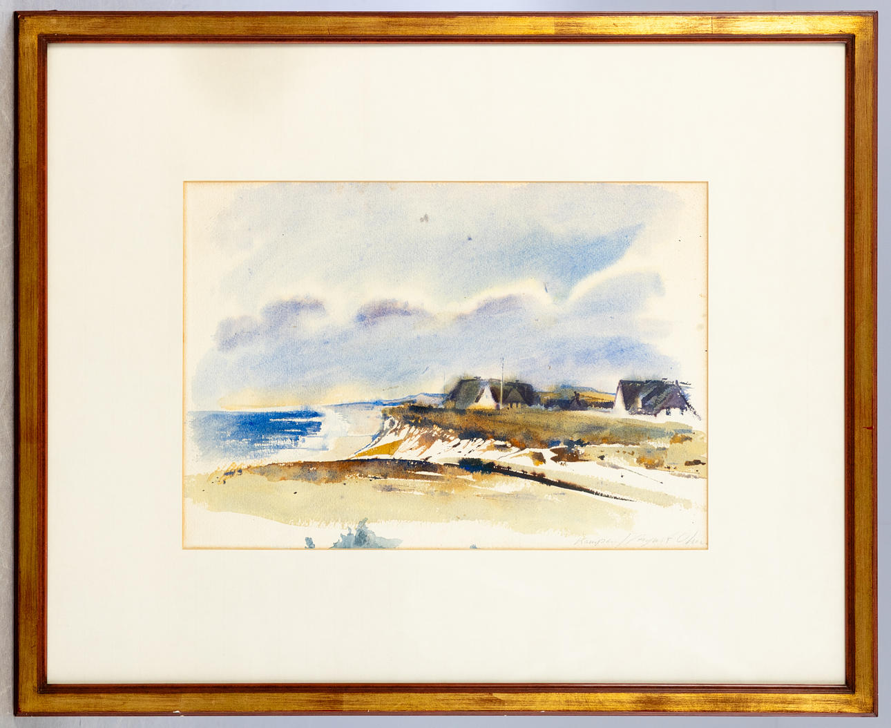 August Ohm (b. 1943), Kampen, watercolor, signed and titled, ca. 35 x 50 cm, framed behind passe-partout and glass, with frame ca. 67 x 82 cm