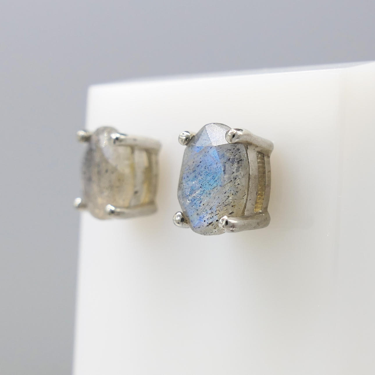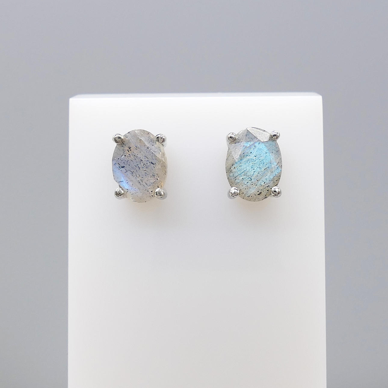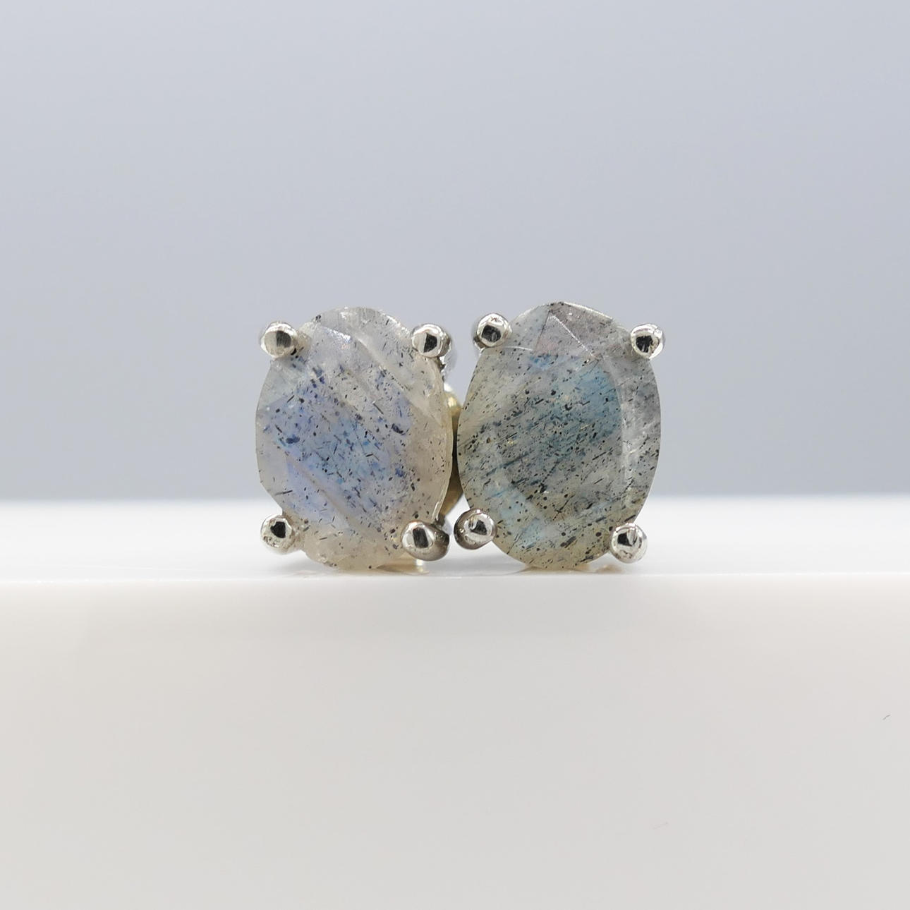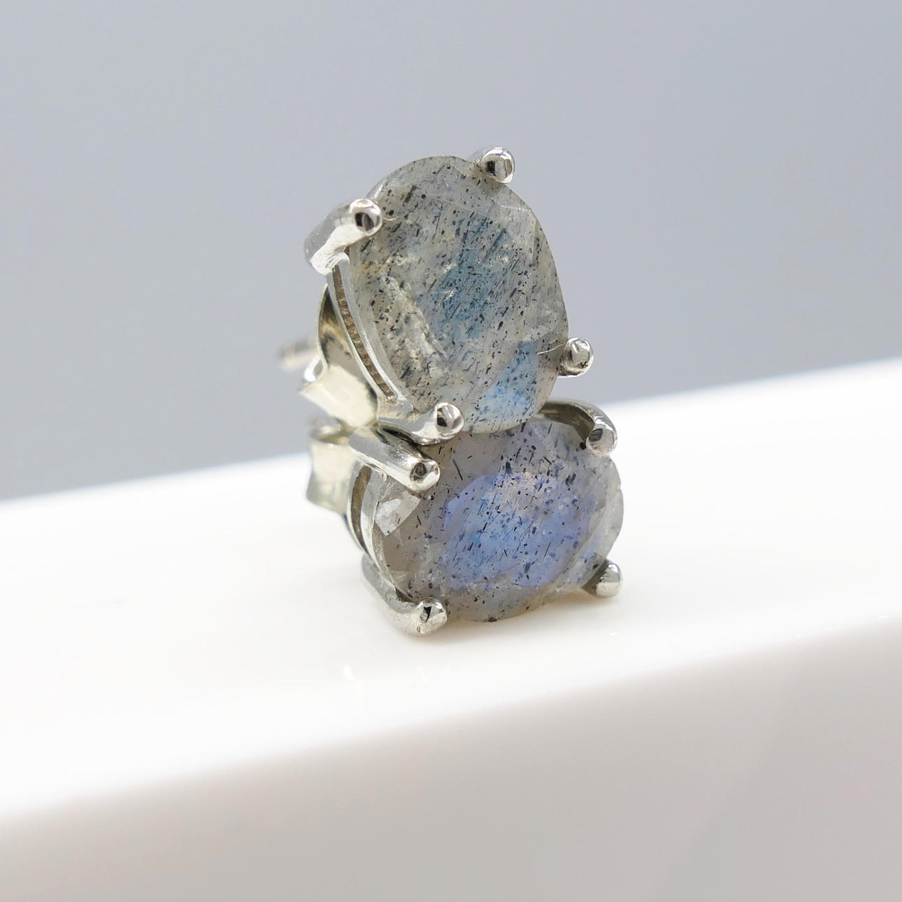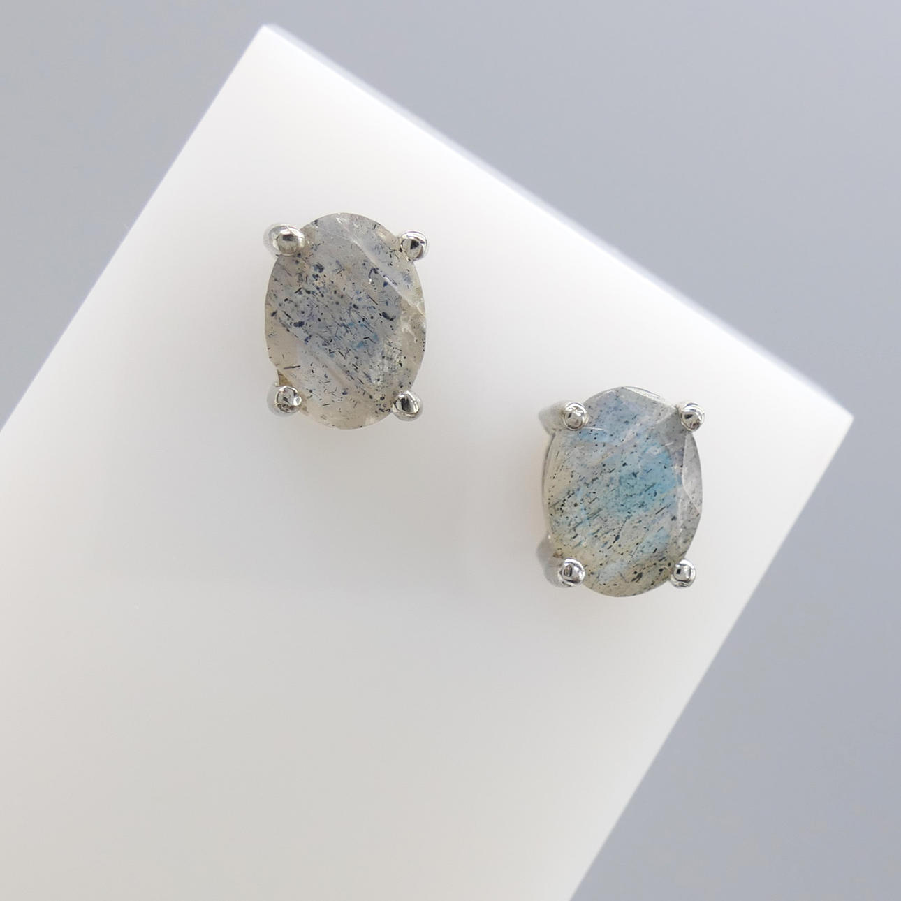 Gemstones: natural labradorite; 8 x 6mm each; 1.40ct total, approx