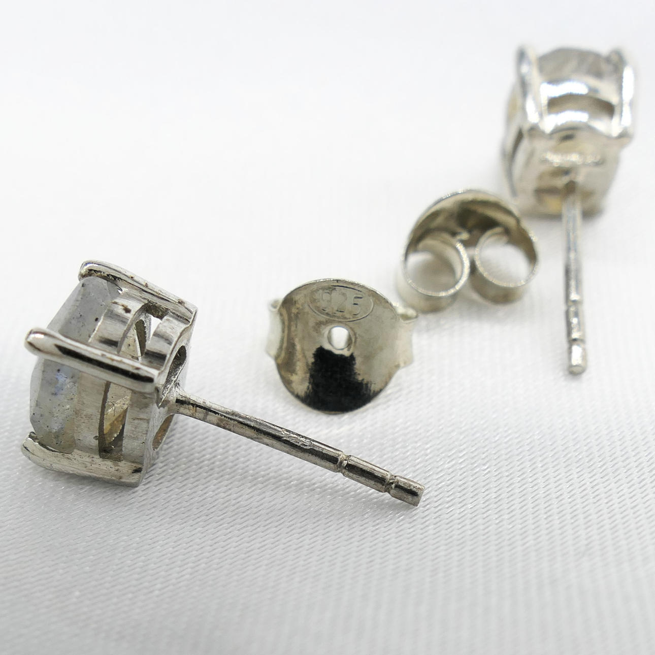 Stud earrings: 925 silver; butterfly backs; claw-set; weight 1.8 grams.