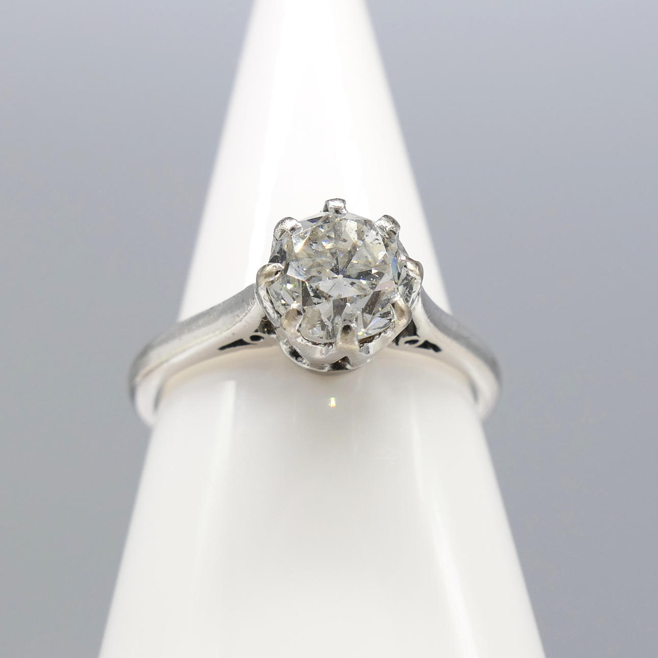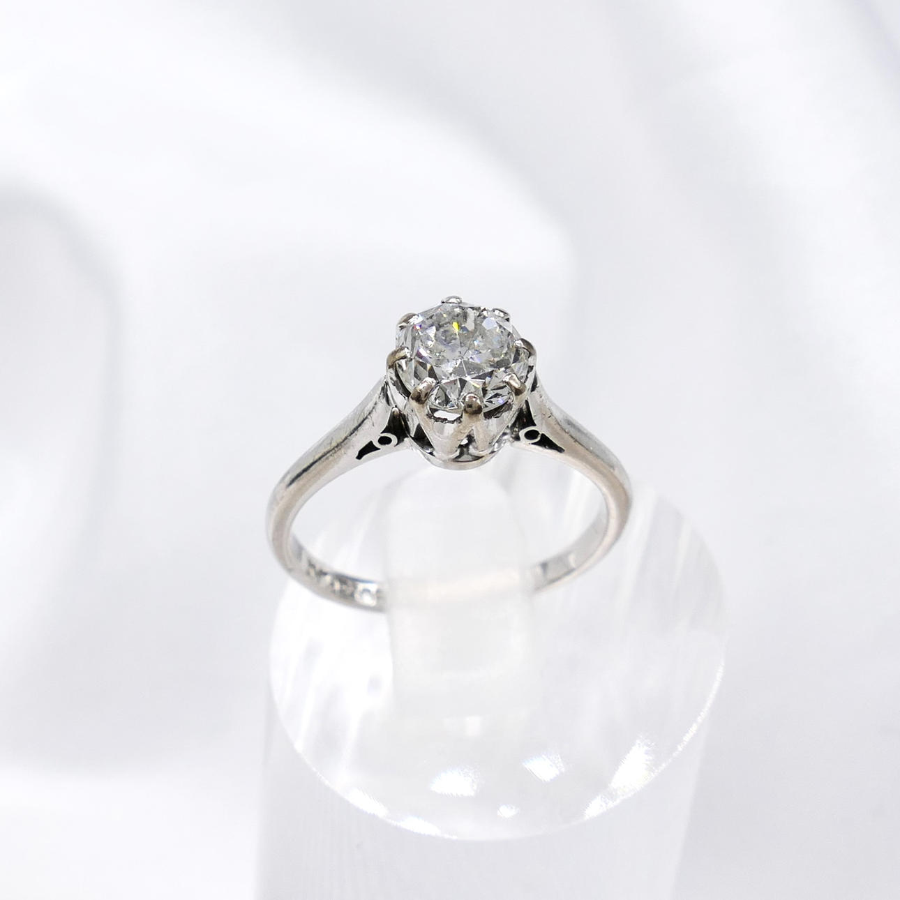 A vintage 18k white gold and platinum solitaire ring set with a single old-cut diamond of 1.00ct approx