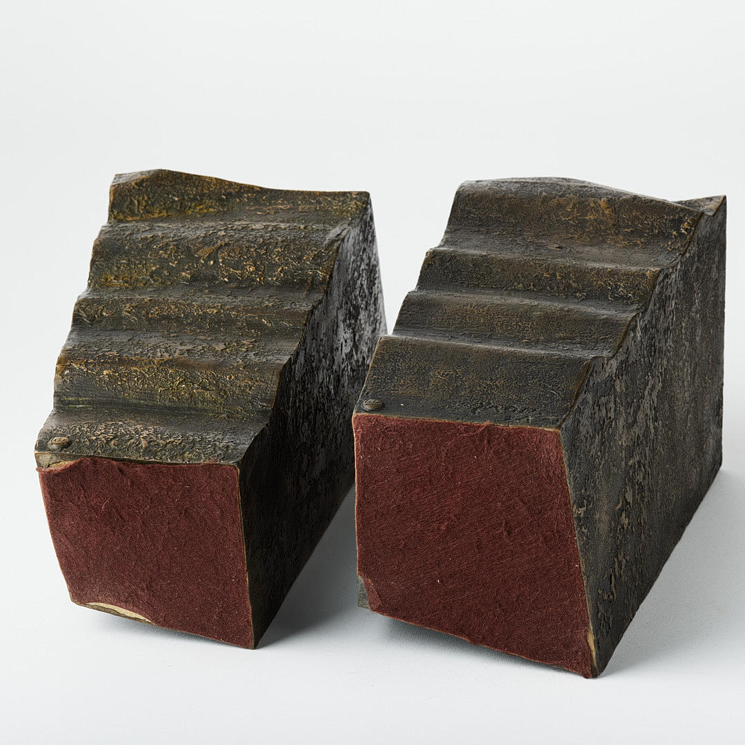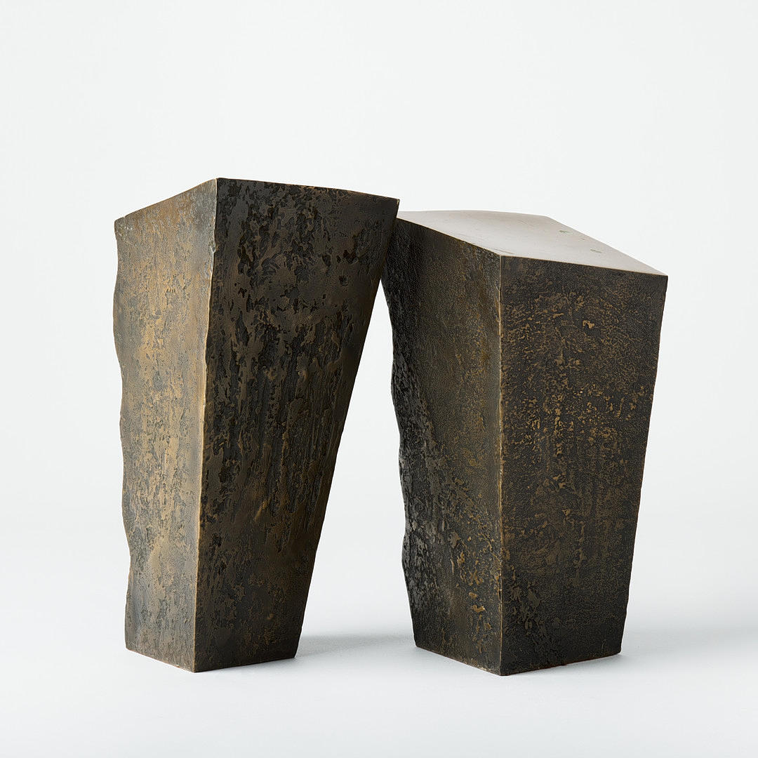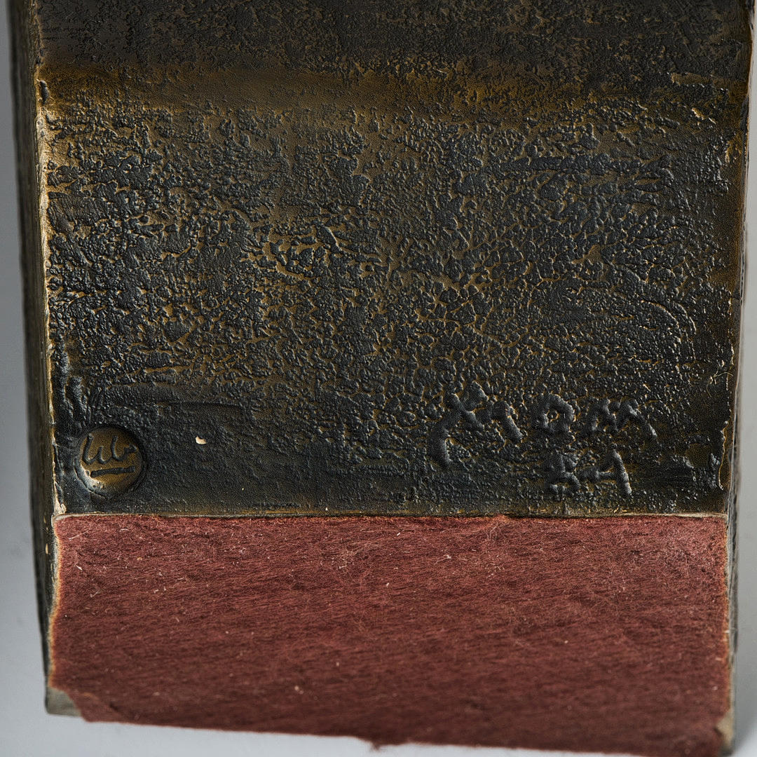 Sculpture in two parts, patinated and partly polished bronze, H 39 cm. H 49 cm (including plinth). Both parts signed and dated Momen 84.